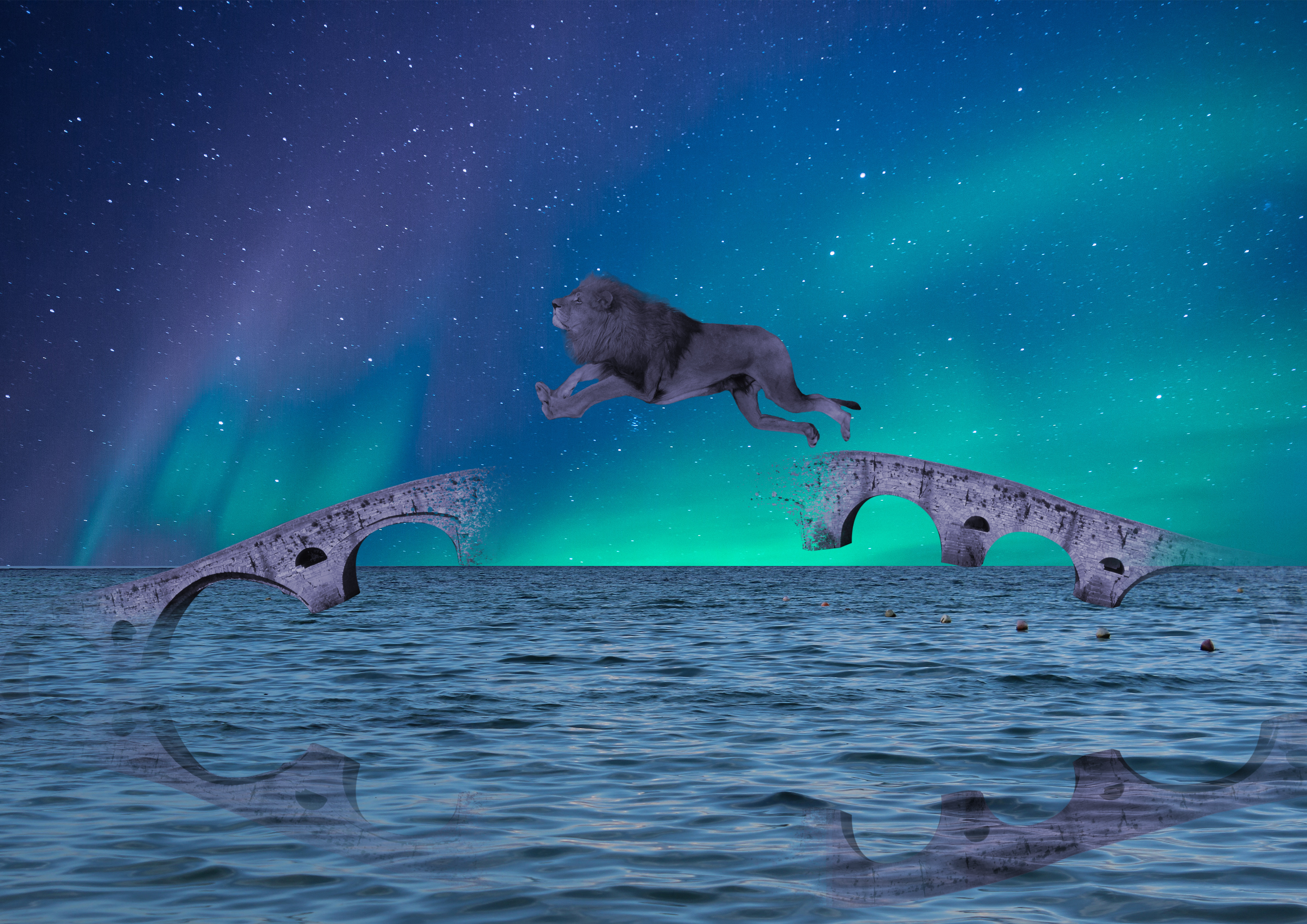 ניגש לחלון השכבות, נבחר את שכבת האריה ואת 2 חלקי הגשר, וניצור מהם קבוצת שכבות [=Group - Ctrl+G].
