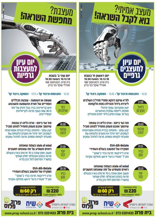 לפניכם תכניית יום העיון למעצבות גרפיות שיחול בס"ד ביום שני ב' טבת 10 בדצמבר 2018