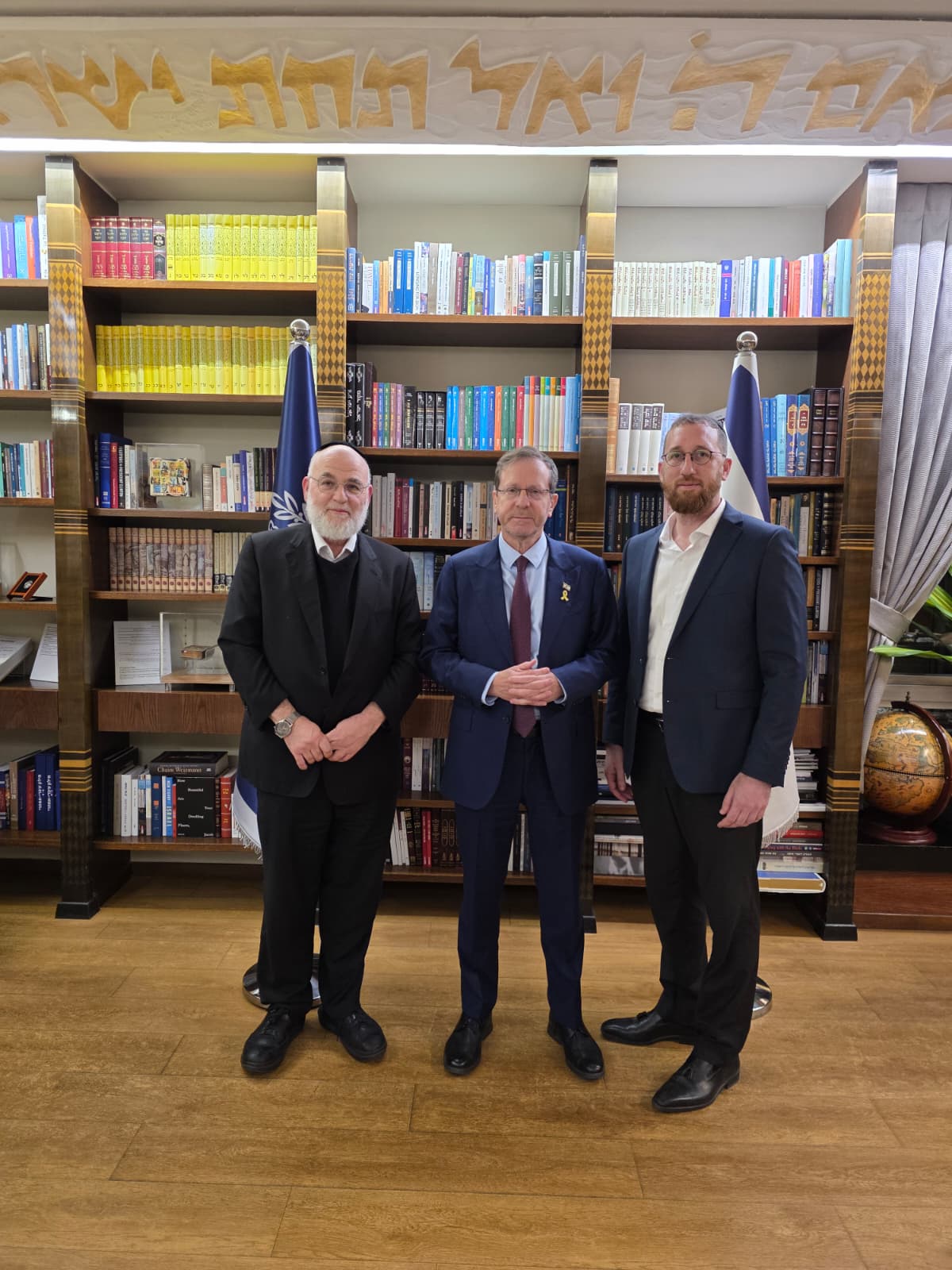 במהלך הפגישה שנערכה בבית הנשיא, דנו הצדדים במצב הנוכחי של תעסוקת חרדים בישראל, אתגרי השילוב בשוק העבודה, והצעדים הנדרשים להמשך קידום מסלולי תעסוקה איכותיים גם במציאות החברתית והפוליטית הנוכחית.