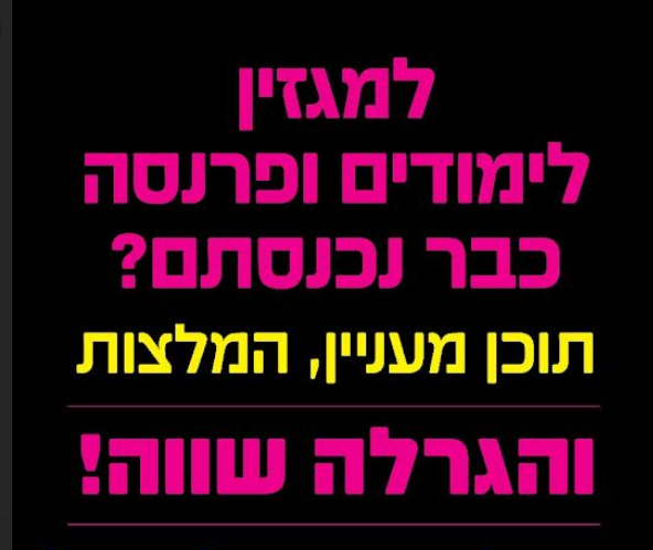 בנוסף, תמצאו מגזין לימודים ופרנסה מסלולי לימוד שמדויקים לכם, גברים או נשים במגזר החרדי, ותוכלו להתחבר מיידית על ידי לחיצה פשוטה לאתר של כל מוסדות הלימוד המופיעים במגזין ולקבל את כל המידע הרלוונטי לכם בצורה מרוכזת, ובפחות זמן.