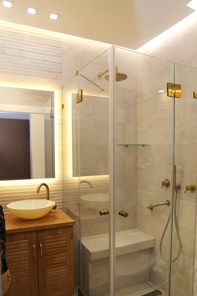 חדר רחצה יחידת הורים לאחר שיפוץ. צילום: א.אפשטיין עיבוד תמונה: ש.יום טוב