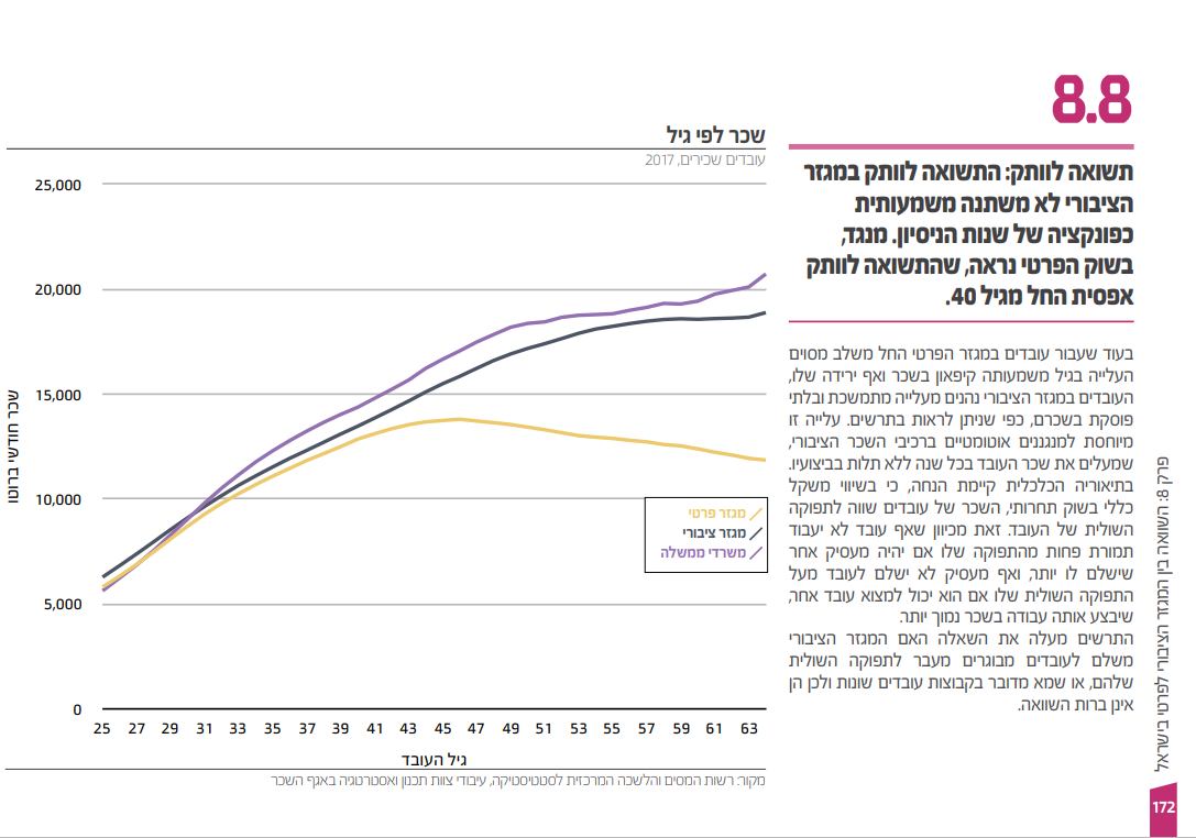 אחרי נתונים כאלו לא קשה להבין שהעובדים החרדים צעירים בגיל ובוותק בצורה קיצונית בהשוואה לציבור הכללי, וממילא בניסיון בעבודה, והתמקצעות וכדומה, וממילא בגובה השכר…