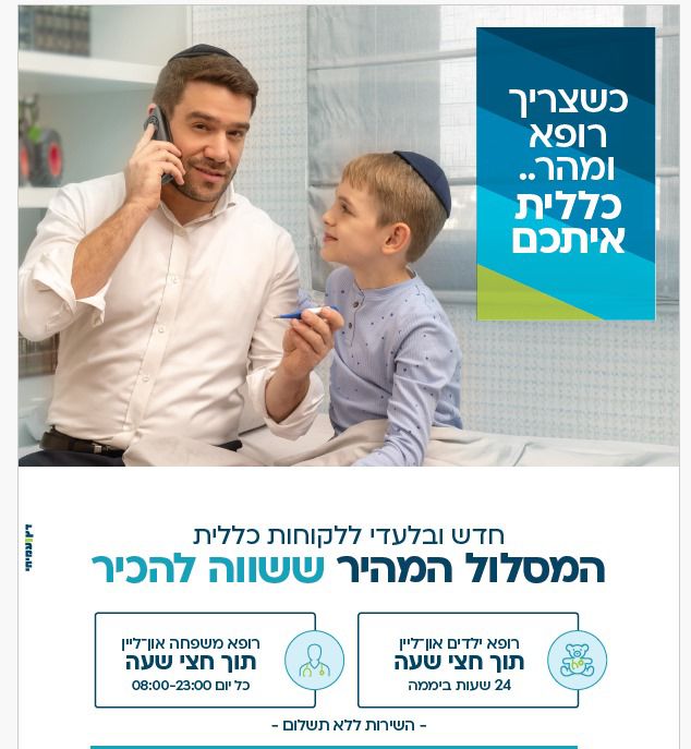 המסלול המהיר שנותן מענה גם דרך הטלפון של כללית, מציב סטנדרט חדש בשירותי הרפואה המקוונים, עם התחייבות למענה תוך חצי שעה - יתרון משמעותי המקל על ניהול סדר היום. השירות מאפשר קבלת ייעוץ רפואי מיידי מהבית, ללא צורך בהמתנה במרפאה, ומציע פתרון יעיל במיוחד בתקופת החורף בה מחלות מדבקות עלולות להשפיע על מספר ילדים במשפחה.