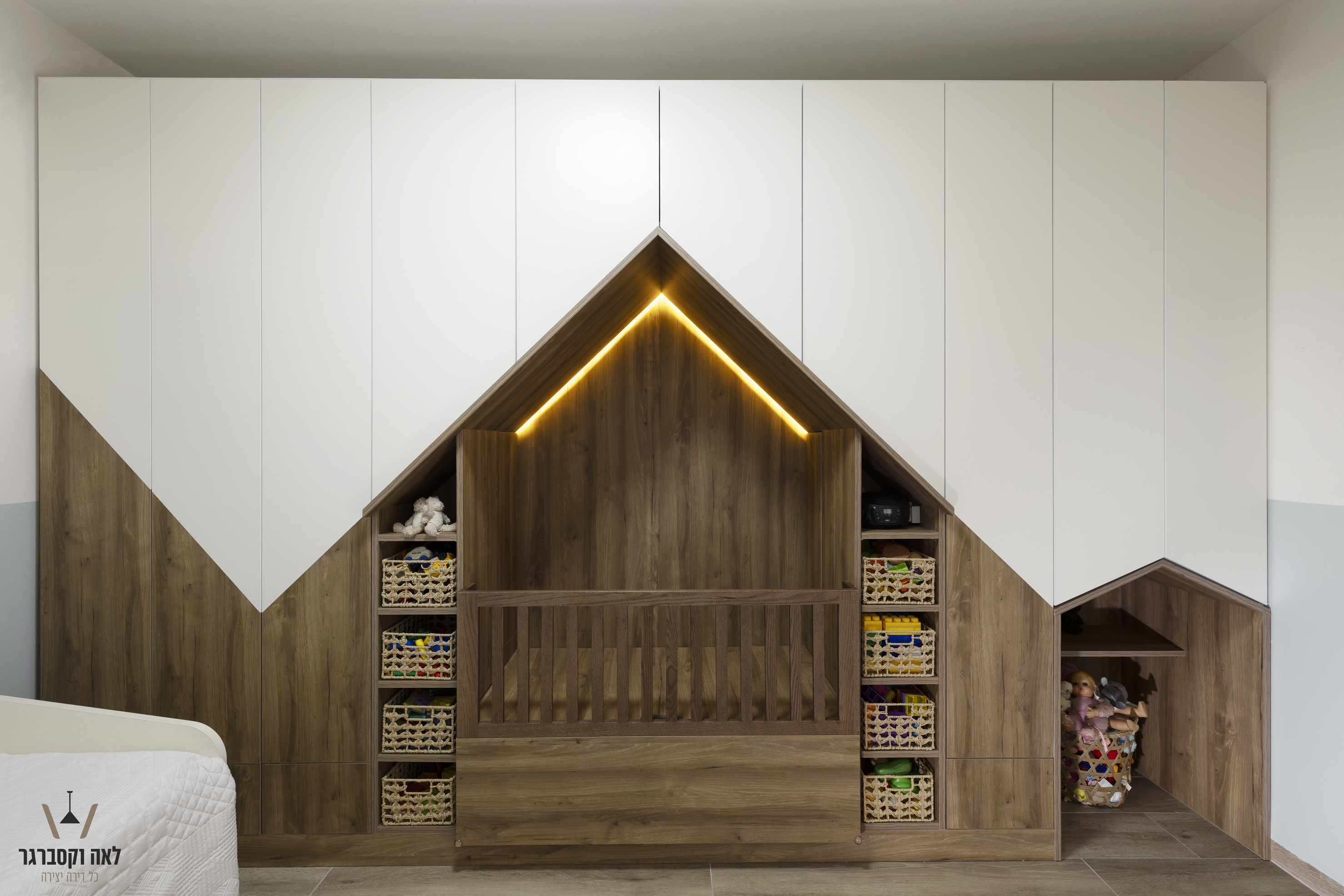 החדר מעוצב בצבעים רכים ומרגיעים, שמאפשרים לילדים ליהנות ממשחק ודמיון, וגם למצוא בו שלווה בסוף היום.