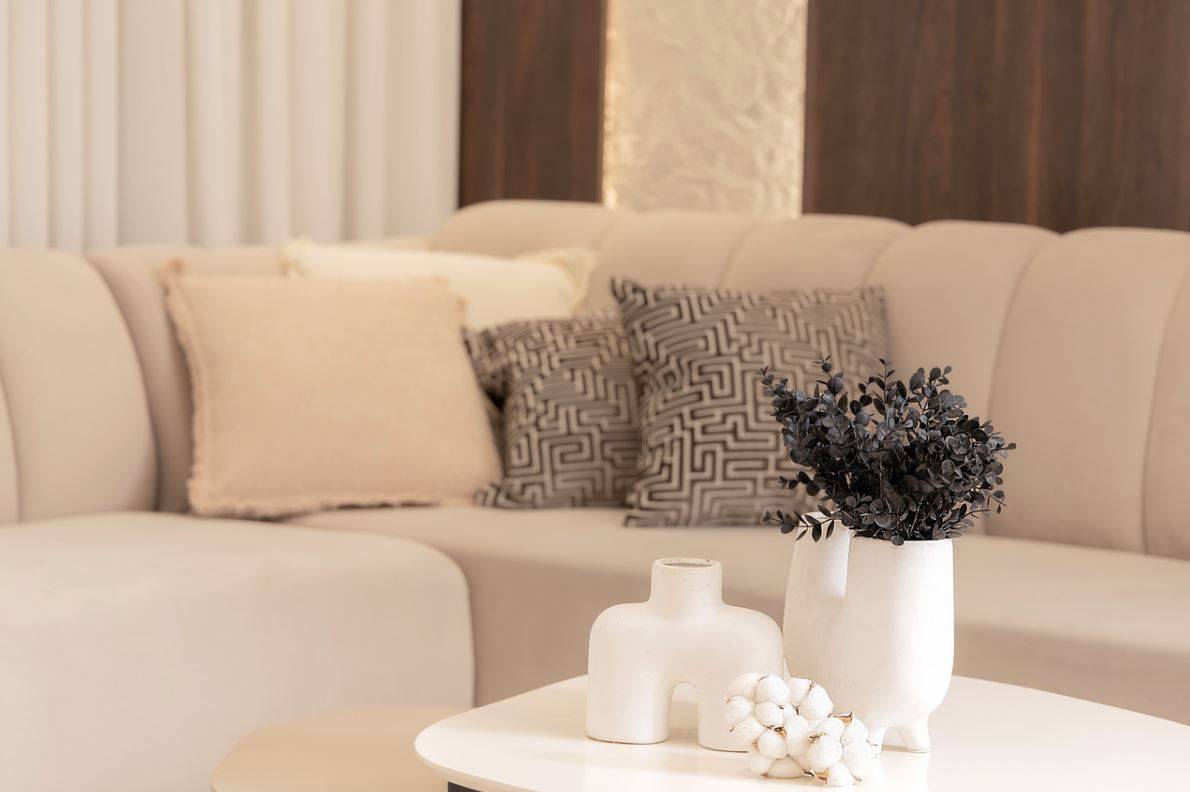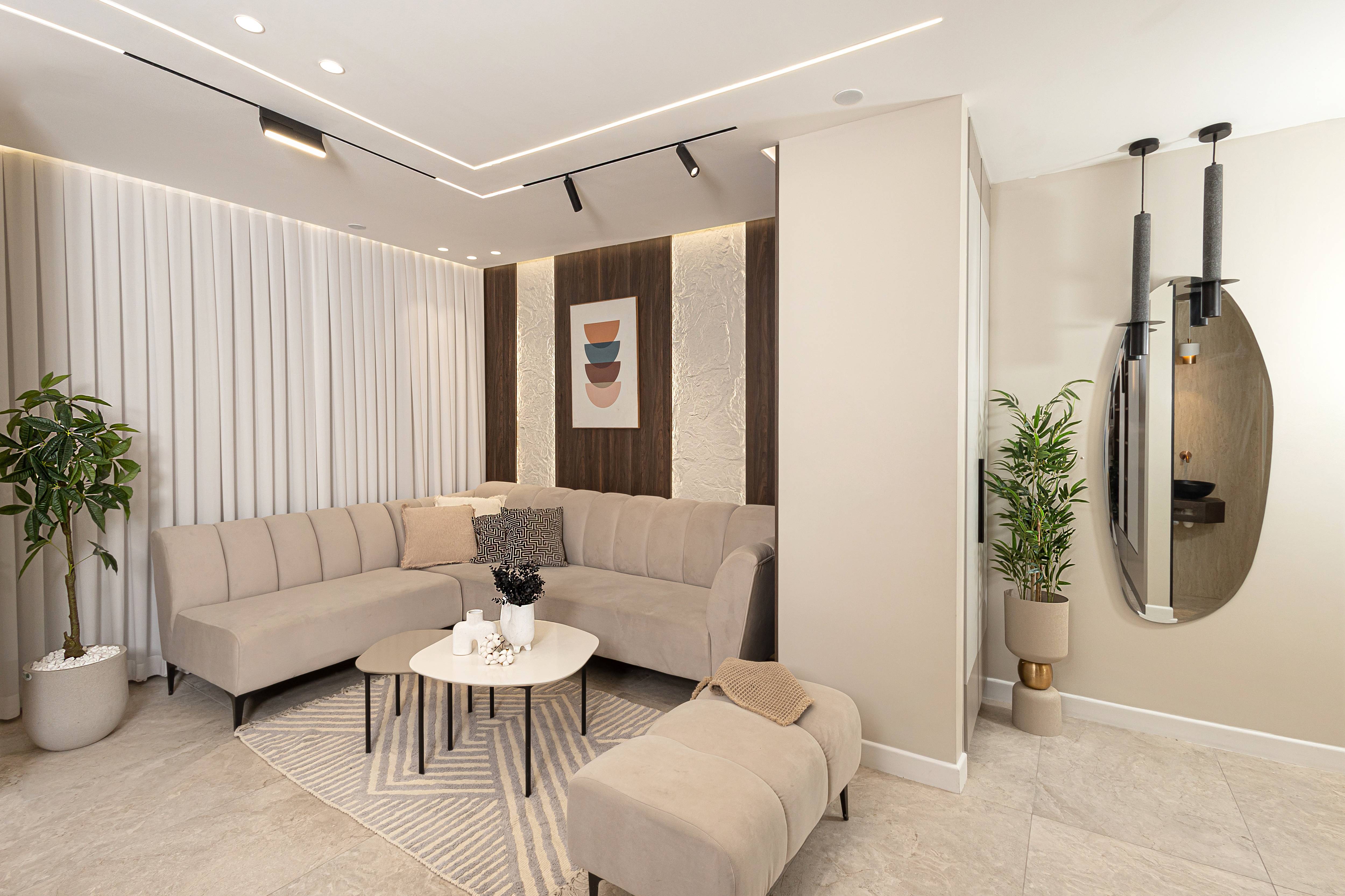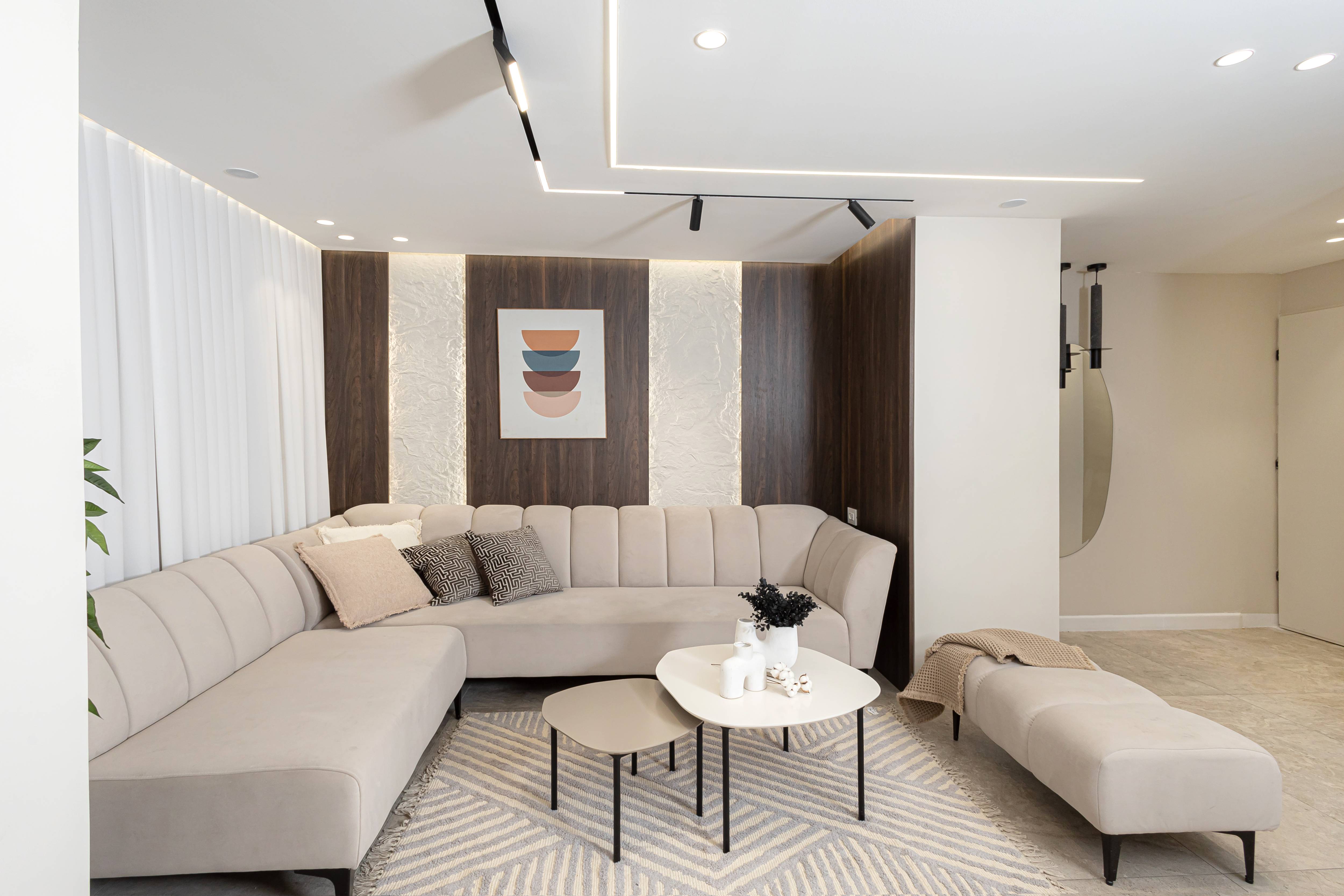 כבר בתחילת הדרך הוגדרה פלטת צבעים ברורה – שמפניה, סהרה וחום טבעי (בחלקו בעץ), עם נגיעות של שחור ליצירת עומק וניגודיות.