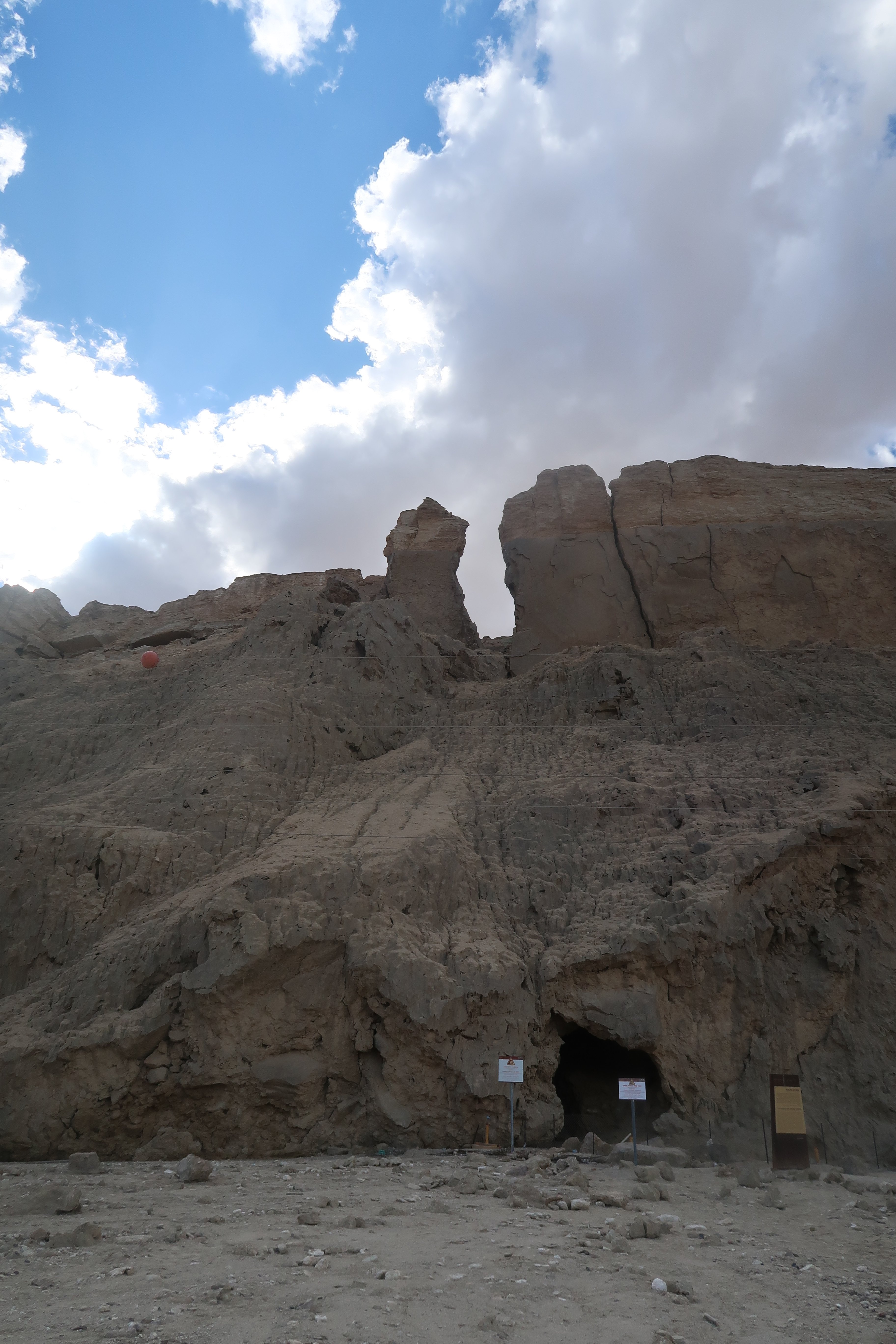 הגענו למערת סדום, זהו צוק מלח גבוה שבתחתיתו מערה שמדריכי הטיולים מספרים ששם לוט ישן אחרי הפיכת סדום,