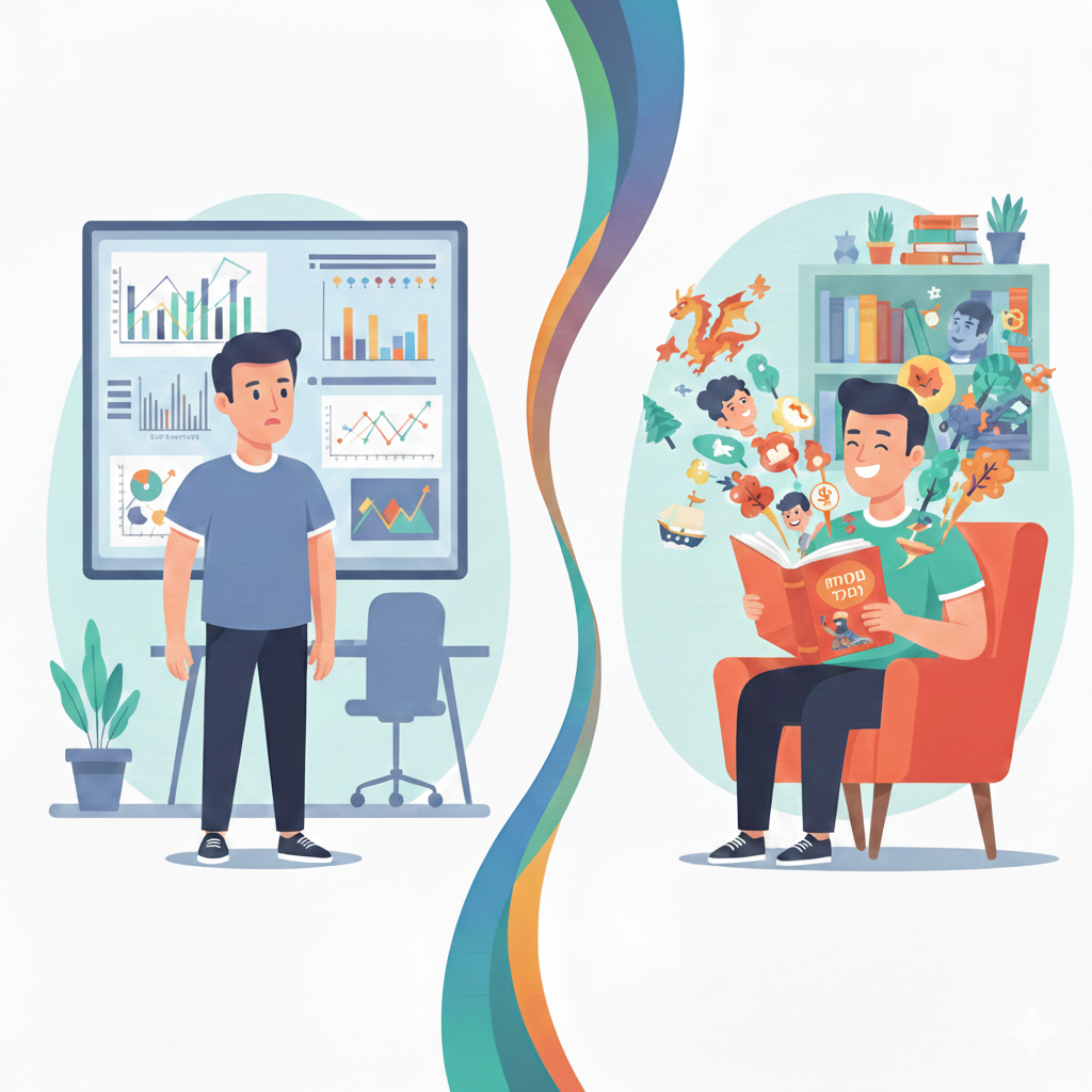 כאן בדיוק נמצא השילוב המנצח: סיפור פותח את הדלת, והמספרים נותנים לה תוקף. קודם אנחנו מזדהים, אחר כך אנחנו משתכנעים. קודם הלב, ואז ההיגיון. זה נכון בשיווק, זה נכון בניהול, וזה נכון גם בתקשורת בין אנשים.