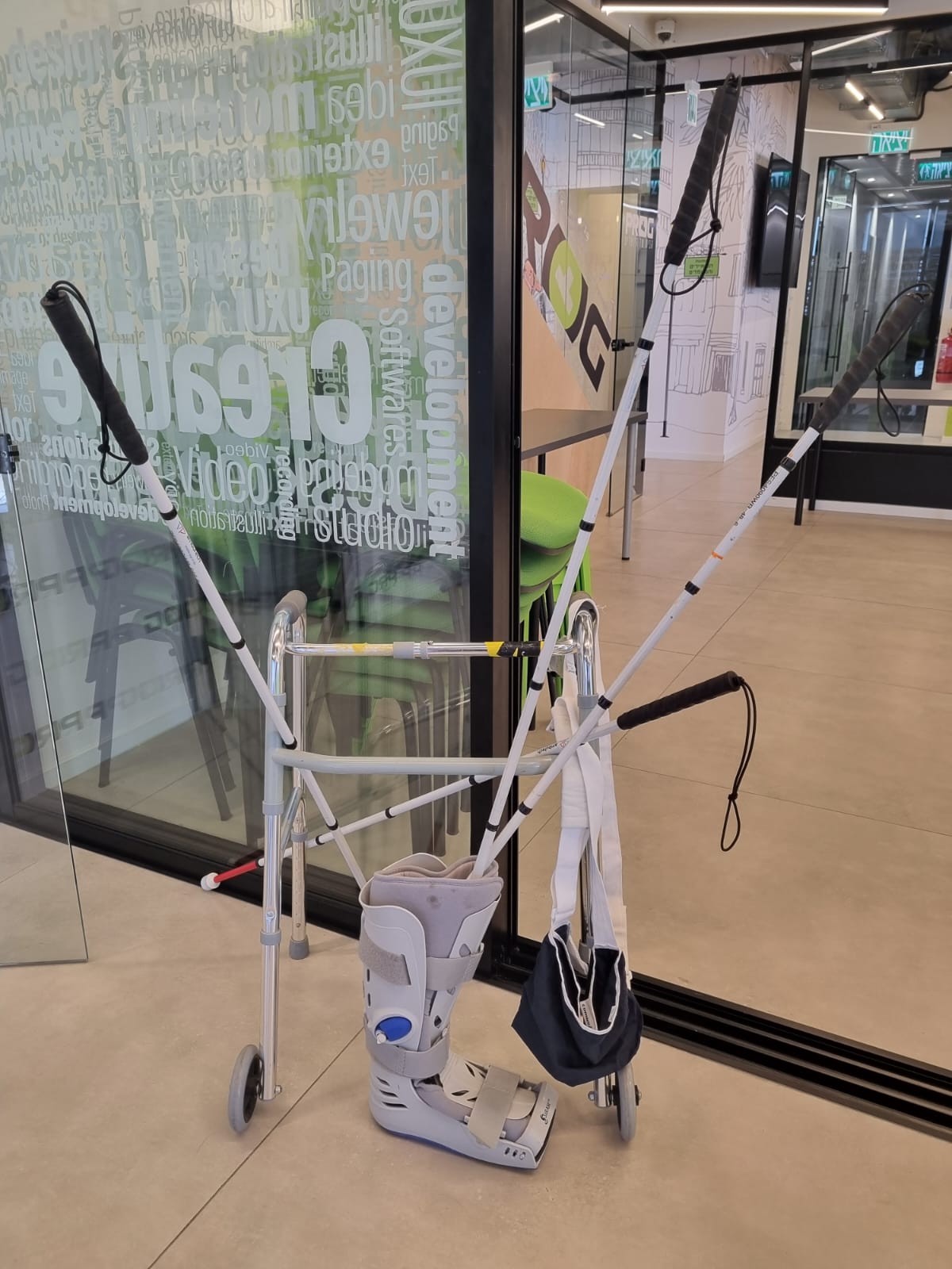 במהלך הקורס התקיים שיעור נגישות מרתק בו הביאו מרצה אורח שהביא איתו קביים ועזרי נגישות,