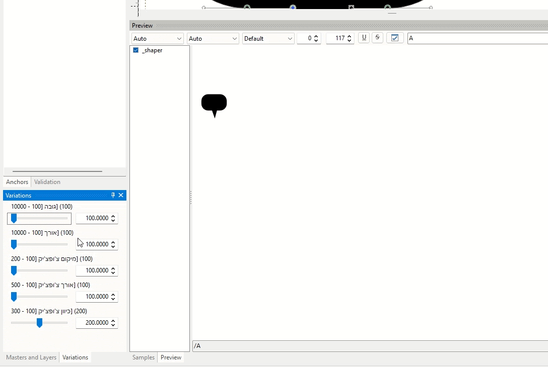 הראה לי ידידי @Shmuly12 פונט שהוא יצר, אההמ, לא יודע עד כמה אפשר לקרוא לזה פונט, אבל, בכל אופן הגליף מראה צורה של בועת קומיקס, שע"י משחקי צירים ניתן להגדיל ולהקטין אותה לגובה, והכי חשוב, ניתן להזיז את השפיץ שנמצא מתחת לבועה, וגם לסובב אותו קצת.