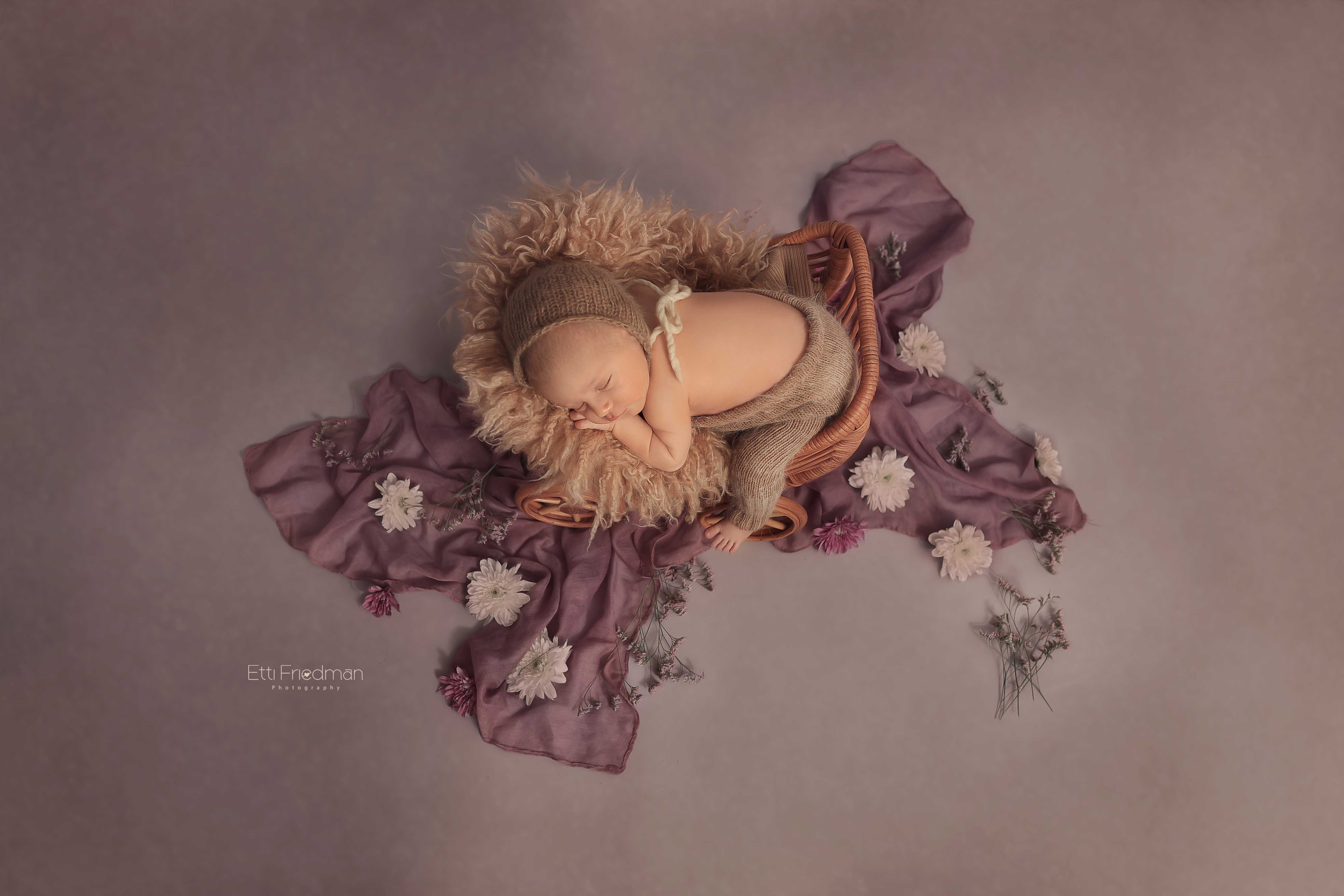 את הסגול הכנסתי בעיטוף ובלב שהתינוקת החזיקה ביד, בכובע,