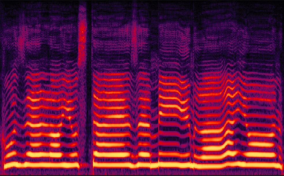 התדר הבסיסי הוא החזק ביותר, ולכן צבעו בהיר ביותר, ואלו שמעליו הולכים ונחלשים עד שכמעט ולא ניתן להבחין בהם. שימו לב לנשימות שנראות ככתם בחלקו העליון של הצילום.