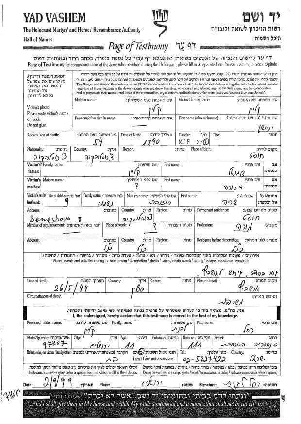 לפני 5 שנים בליל יום השואה ראיתי לראשונה בחיי את דף העד שסבא וסבתא השאירו ביד ושם.
