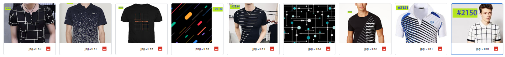 זה מה הקובץ הראשון שקיבלתי. אלו החולצות. יש ארבע גזרות ועליהן צריך להחיל את עשרת הדגמים לשנה זו.