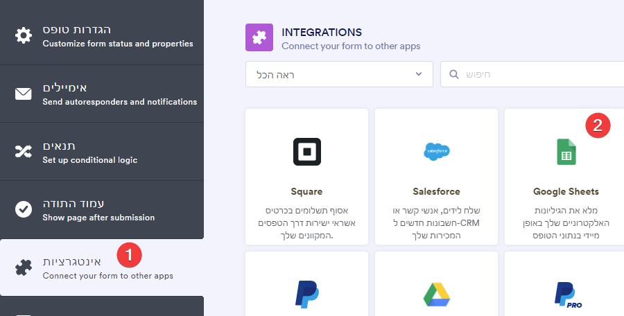 בתפריט-הצד נבחר באינטגרציות, ואז בגוגלשיטס.