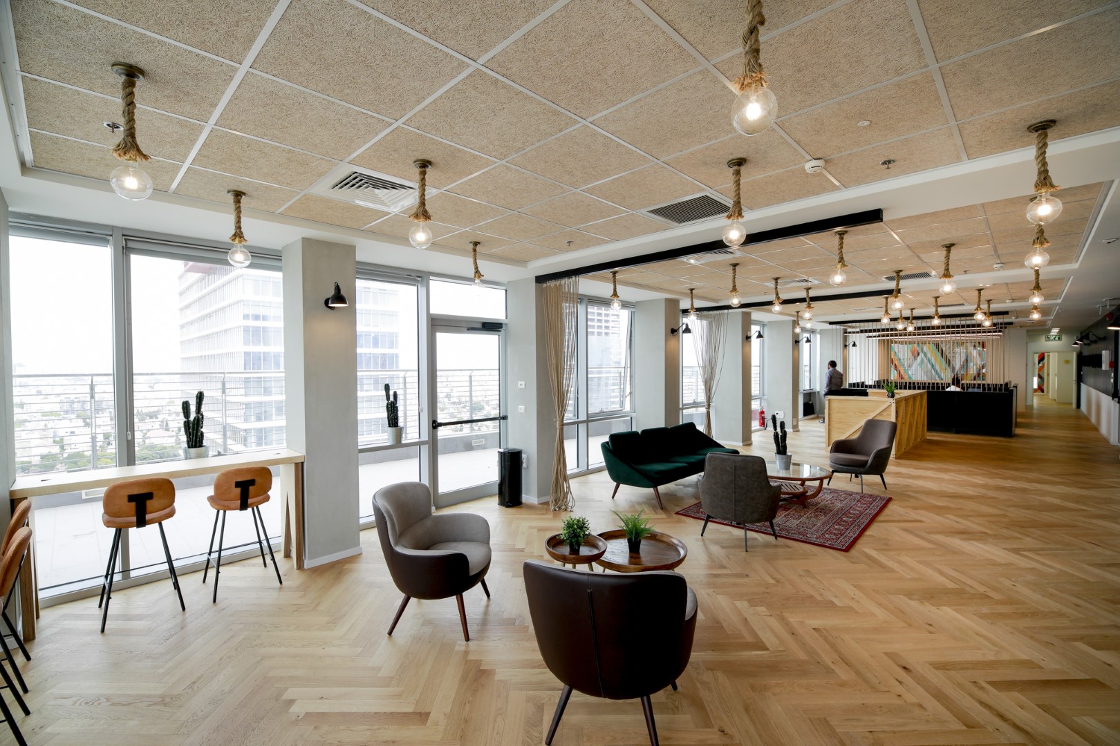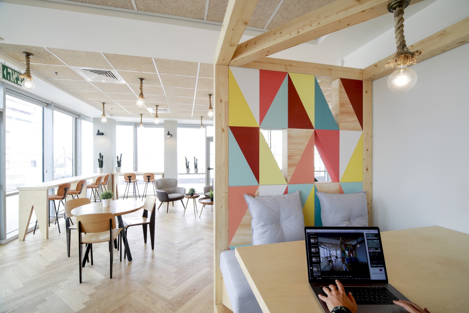 המרחב מבטא צבעים עשירים, תבניות רבות ושכבות היוצרות את המרקמים הרצויים. בין תחנות העבודה הוקמו חבלים ויצרו את הריתמוס והדינמי, ובינתיים מאפשרים פרטיות בעת הצורך, תוך כיבוד צרכי הלקוחות.