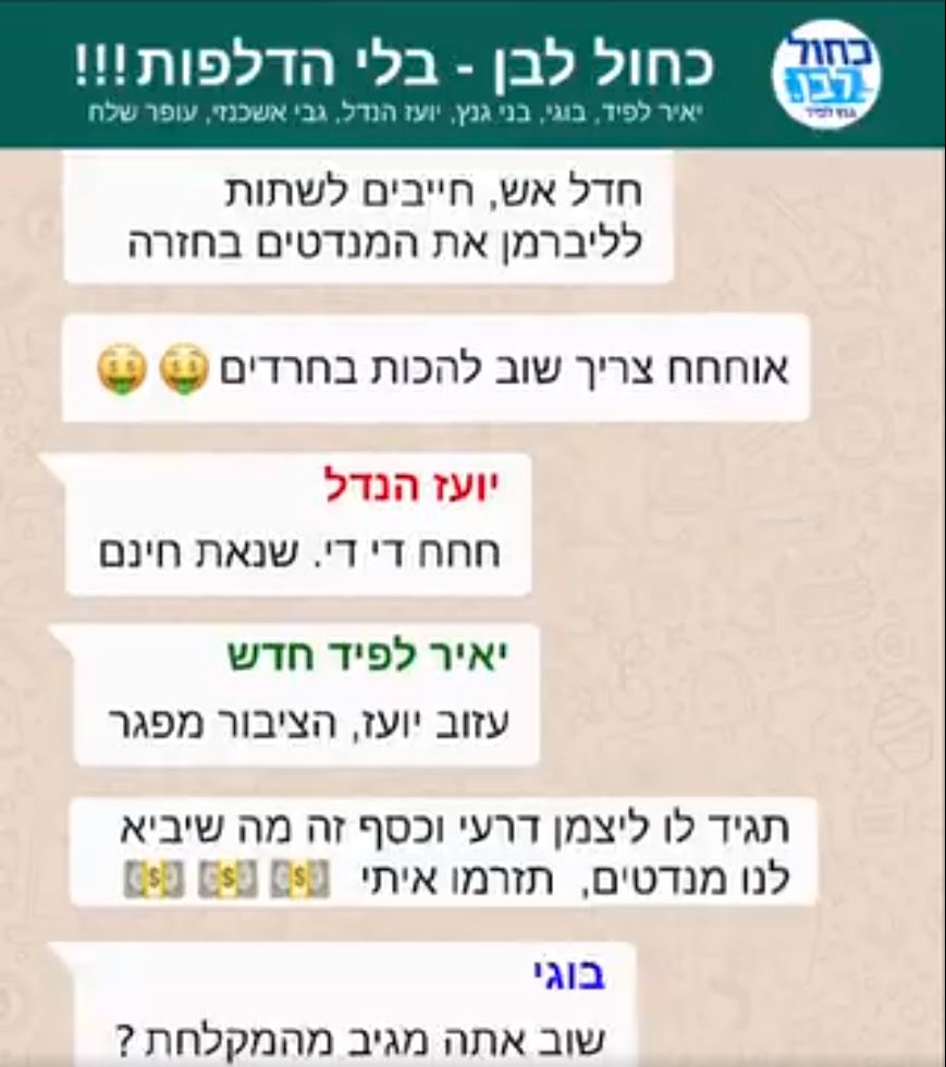 בתחילת החודש סערו הרשתות החברתיות בגלל עוד סרטון נוטף שנאה לחרדים שהעלה יו"ר יש עתיד חבר הכנסת יאיר לפיד. הסרטון הפרובוקטיבי שמתעד כביכול את הנכתב בקבוצת ווטסאפ של חברי הקואליציה של נתניהו הוצגו חברי הכנסת החרדים כחמדנים שרוצים לקחת את כל הכסף של המדינה לטובת החרדים.