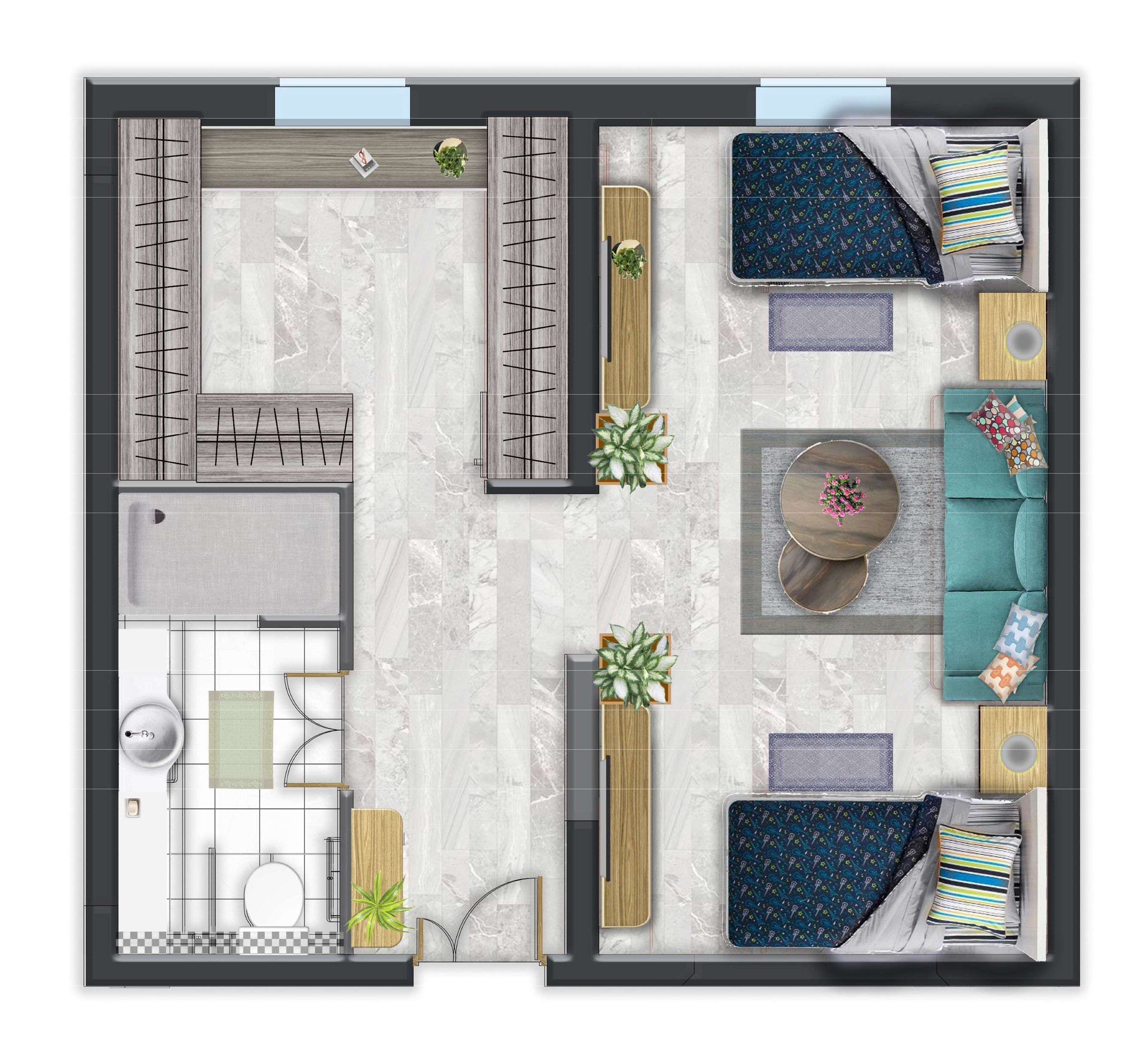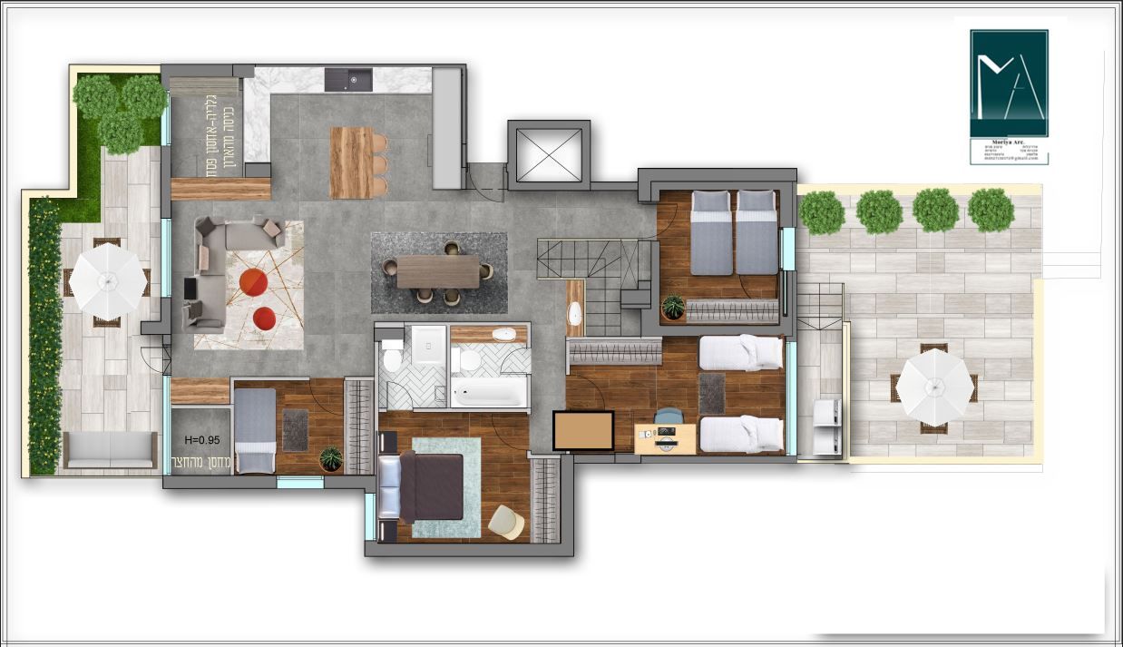 2. תכנית בשילוב ריהוט, וריצוף מאויר- לא כולל עיצוב.