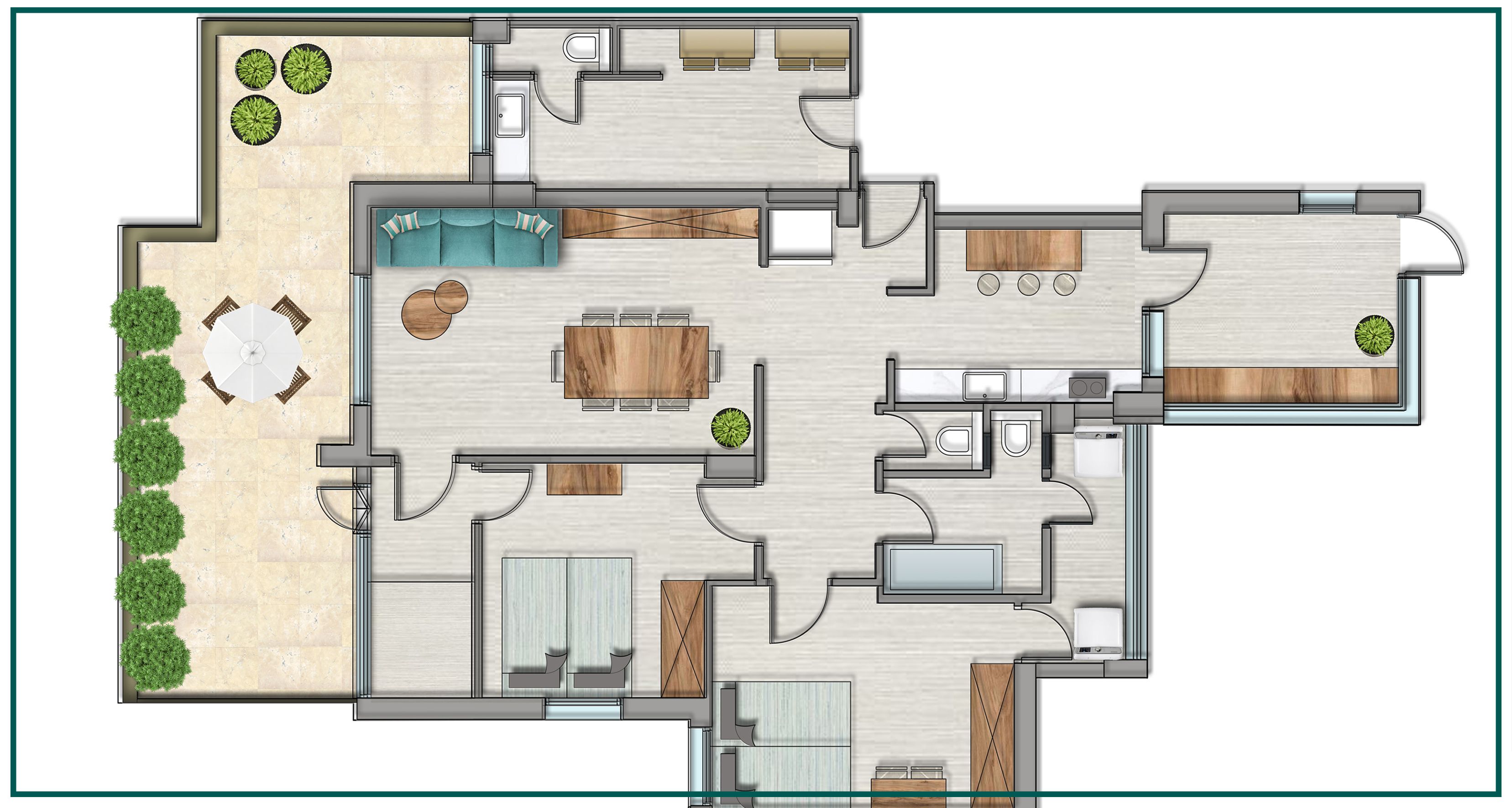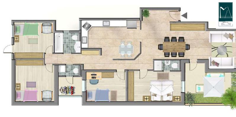 3. תכנית ריאליסטית –תכנית הכוללת רהיטים , טקסטורות ריצופים וכן אלמנטים נוספים- והכל מאלמנטים אמתיים ולא מאוירים- בתכנית זו העיצוב יותר מתבטא ויותר מושך.