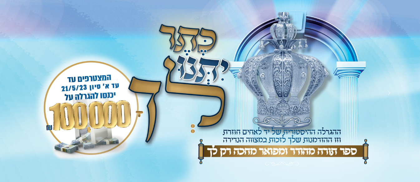 לפרטים נוספים ולכניסה להגרלה, לחצו כאן. לאתר המאובטח של יד לאחים או חייגו 9234*