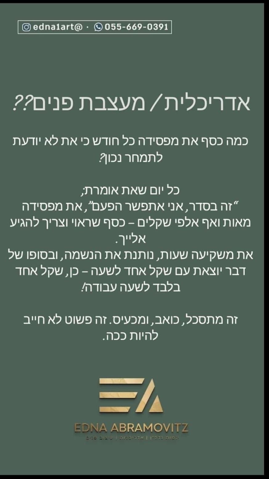 כל יום שאת מוותרת, זה הפסד של מאות ואפילו אלפי שקלים.