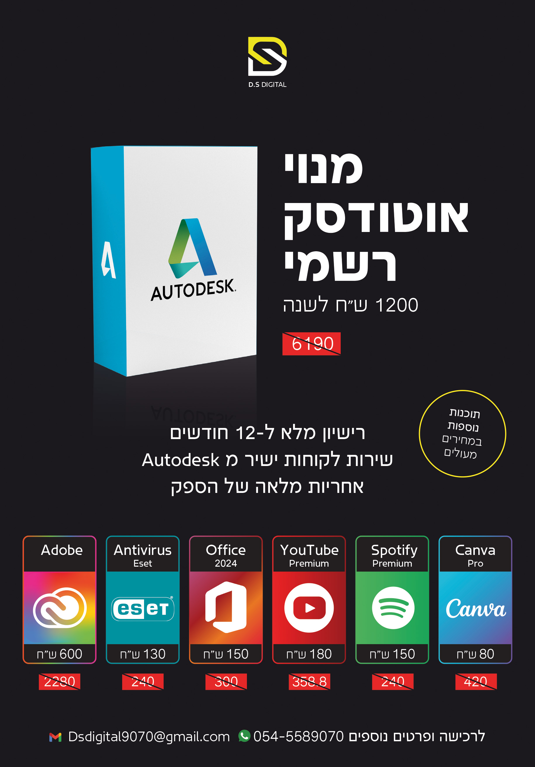 רישיון מקורי לשנה לכל תוכנות אוטודסק!!