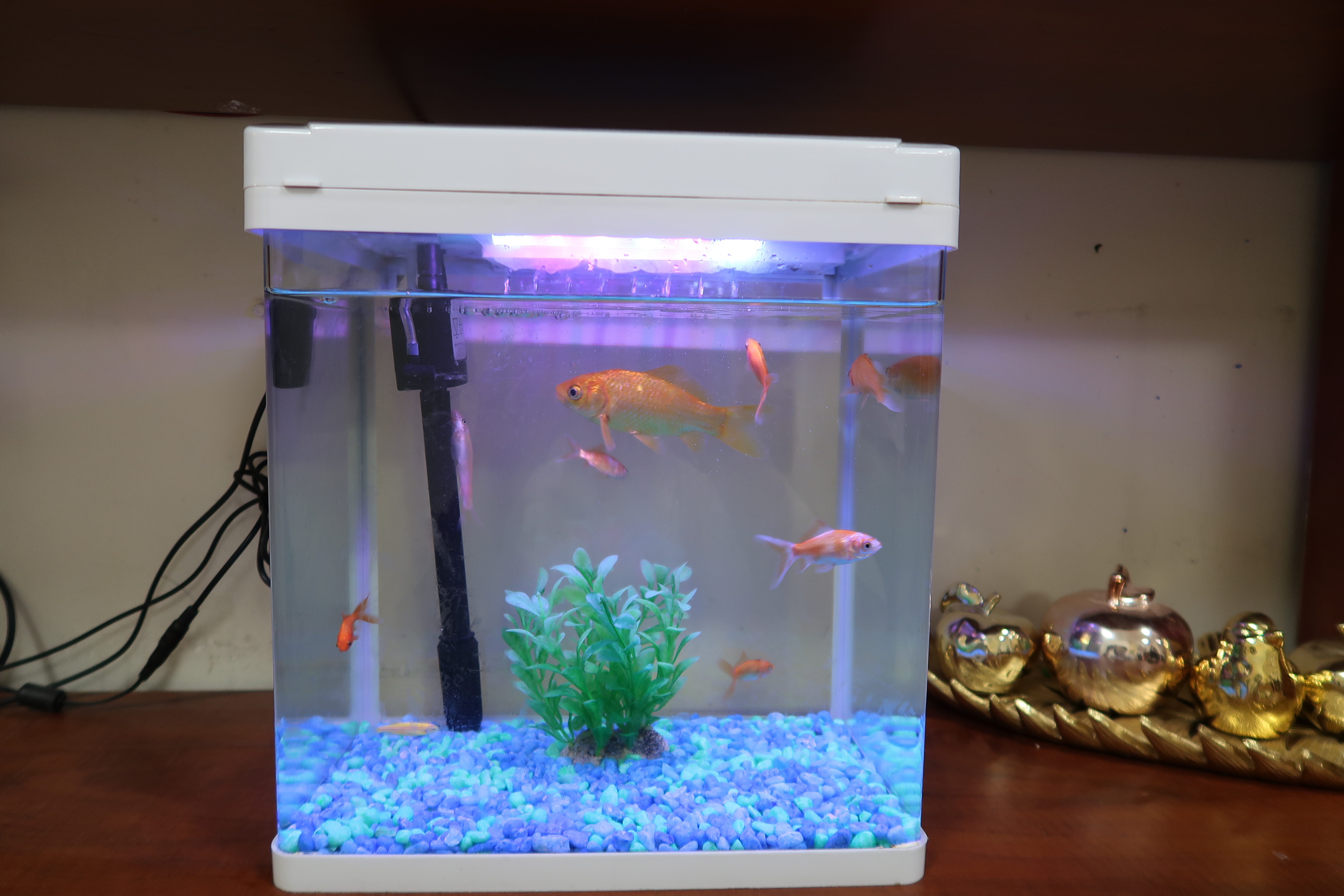 אקווריום קומפקטי חדש יחסית + פילטר וחמצן + תאורה + 7 דגים