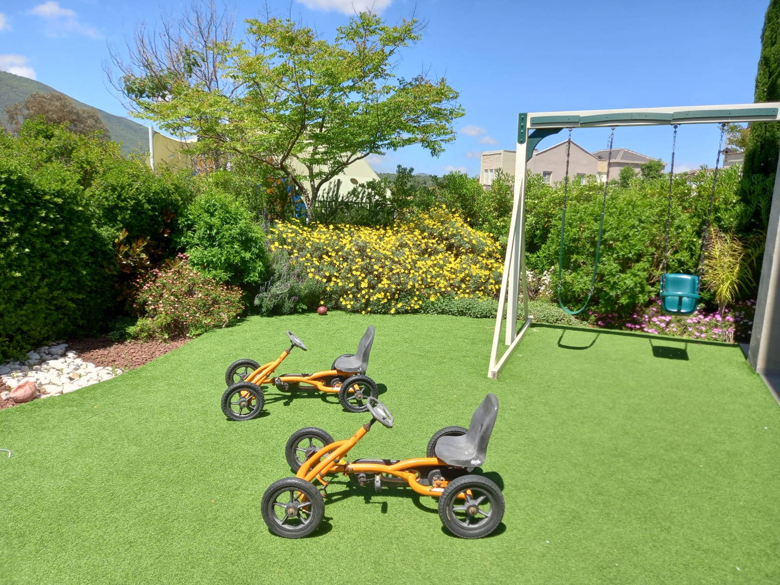 חצר סגורה עם צמחיה עשירה ופינות ישיבה