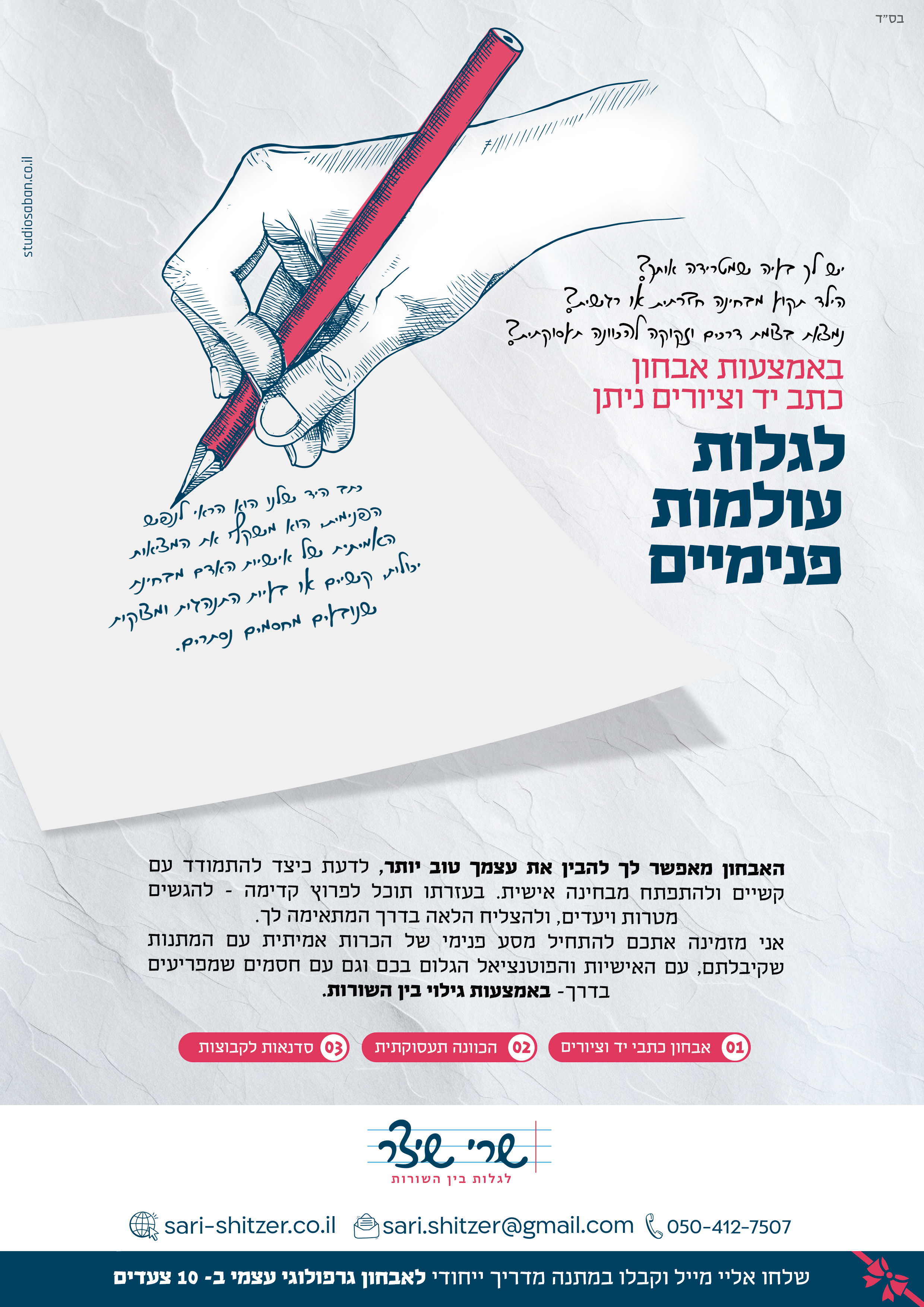 בתהליך של אבחון גרפולוגי, חשוב לי לתת מענה ואבחון לכל בעיה שמטרידה אתכם או להתלבטות משמעותית במיוחד.