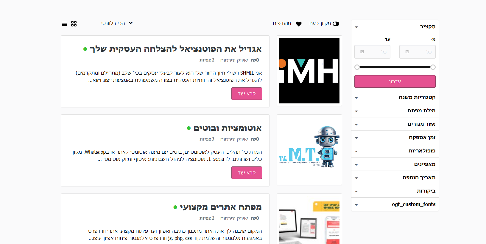 אבל כעת המצב עומד להשתנות, באתר שהקמנו (בהרצה) תוכלו לפרסם את תחום התמקצועתכם לא עלות כלל, ולתמחר את מחיר העבודה, ואף לגבות את התשלום באשראי.