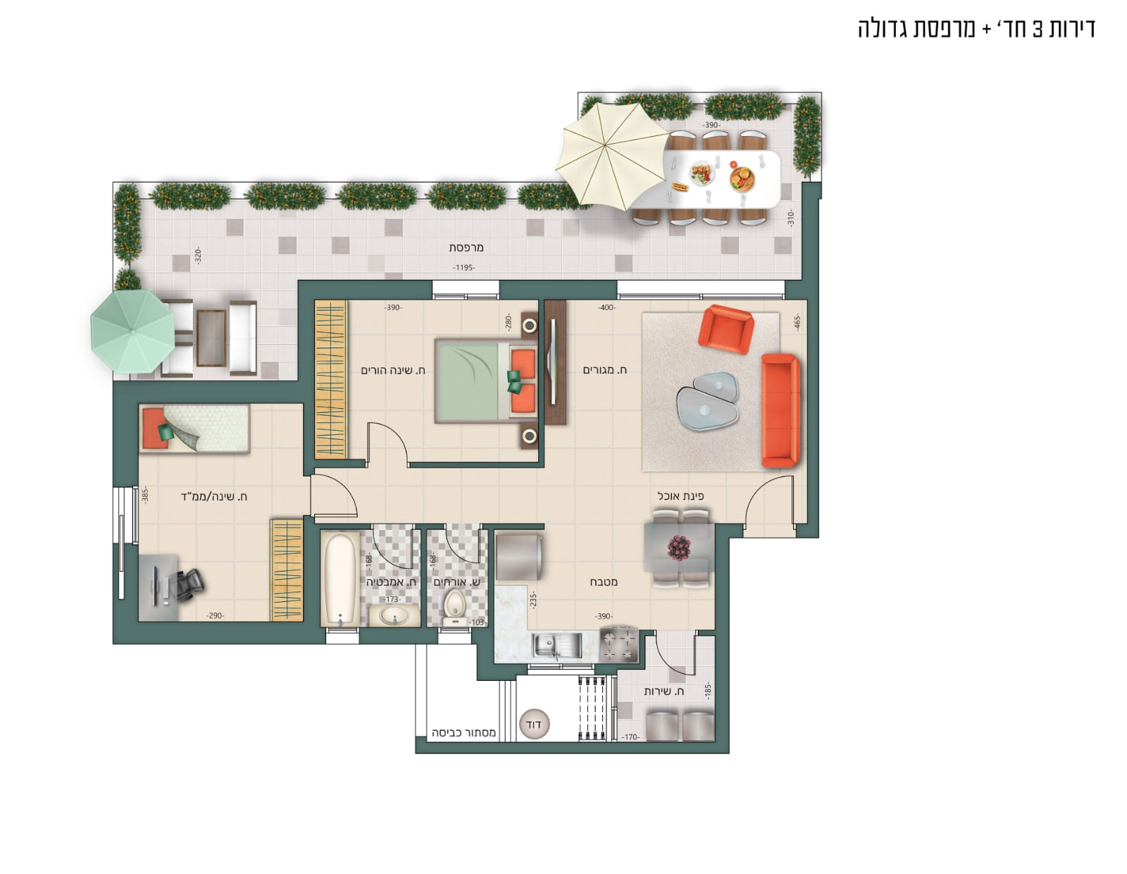 באזור החרדי בשכונת בצוותא המבוקשת דירה נדירה וייחודית 3 חדרים 80 מטר + 35 מטר מרפסת סוכה, ס"ה 115 מטר! מרגישה כמו דירת גן.... כולל מחסן וחניה!