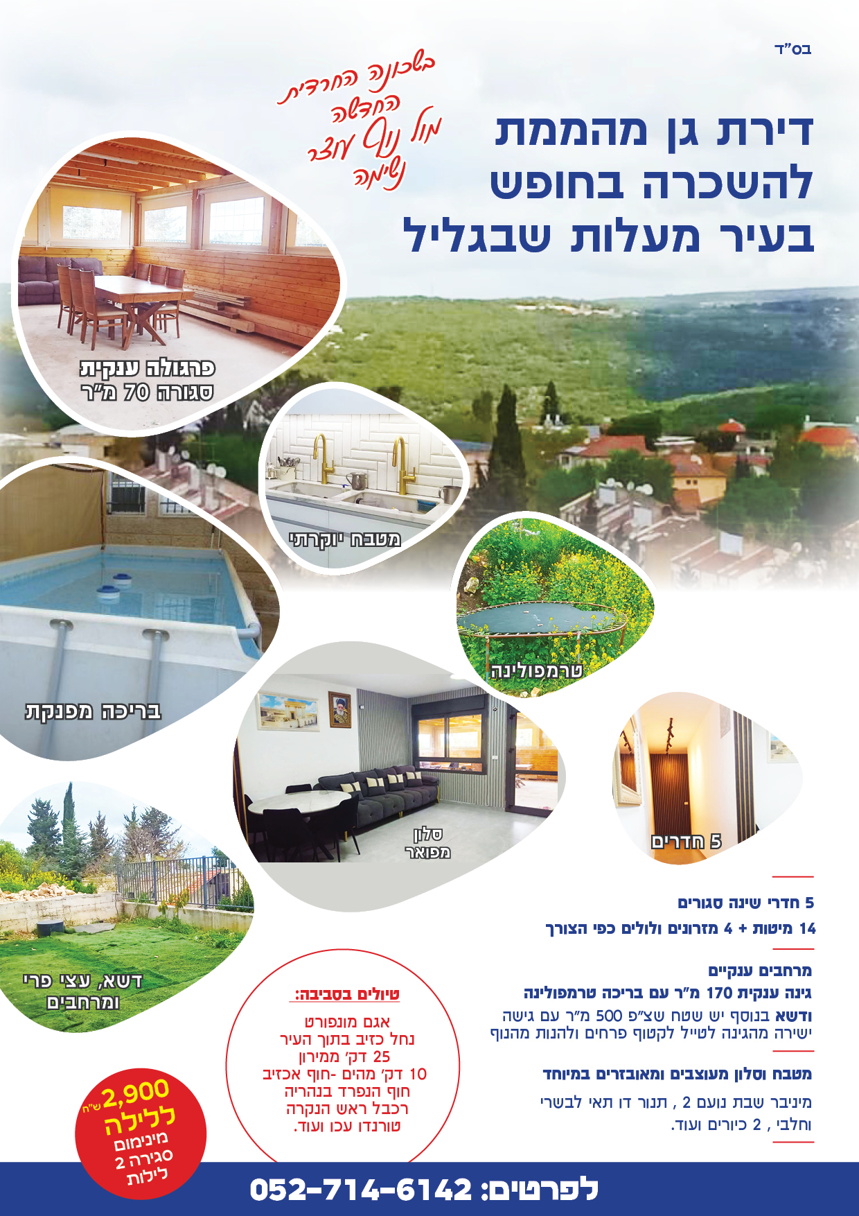 25 דק ממירון , 20 דק מחוף אכזיב, ראש הנקרה, טורנדו עכו, החוף הנפרד בנהריה,