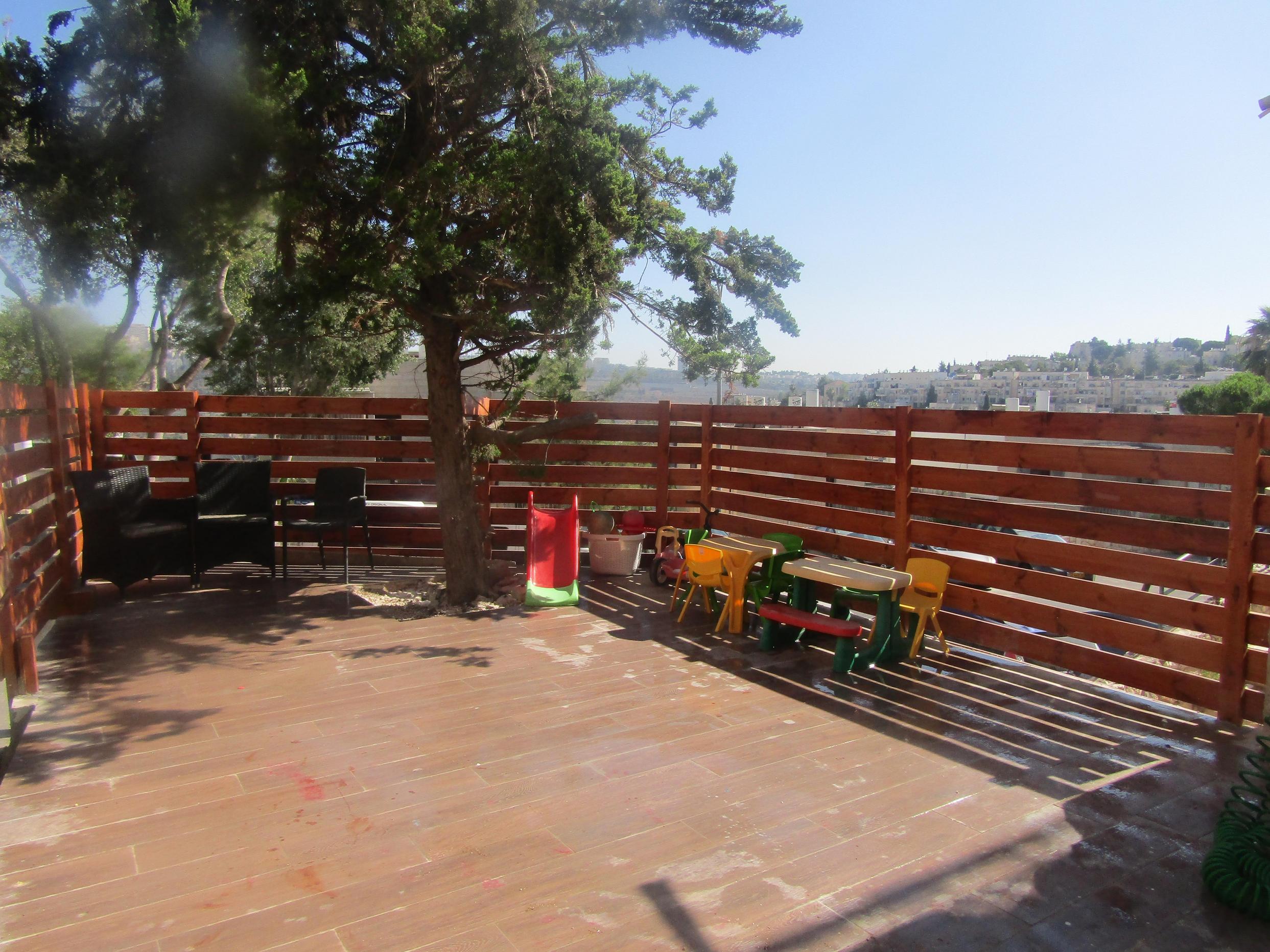 בירושלים, דירת גן מהממת, משופצת, סלון ענק, ועוד 4 חדרי שינה, 2 מקלחות, יחידת הורים, 10 מיטות