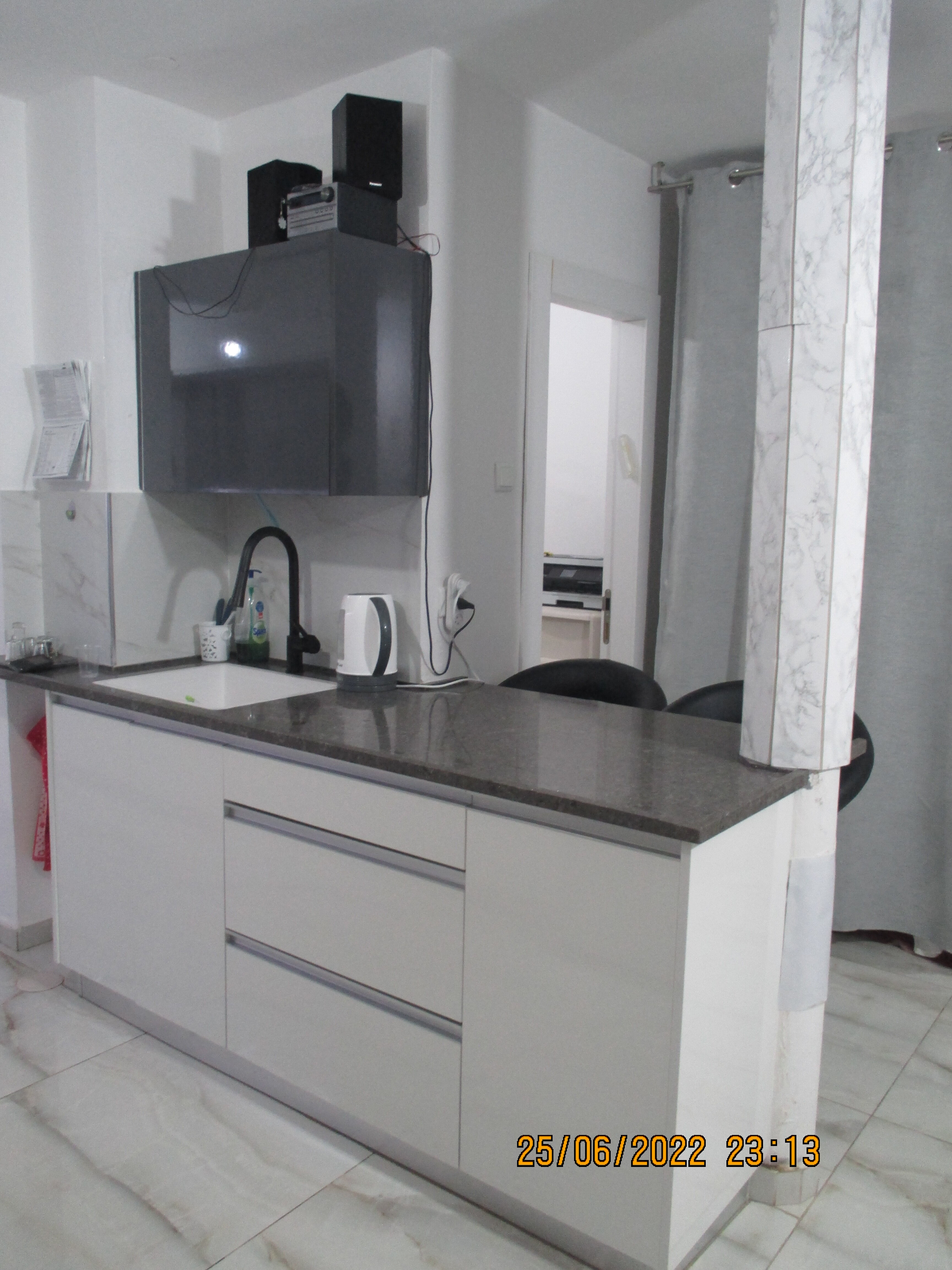תנור, מיחם שבת, פלטה, מקרר גדול ומרווח.