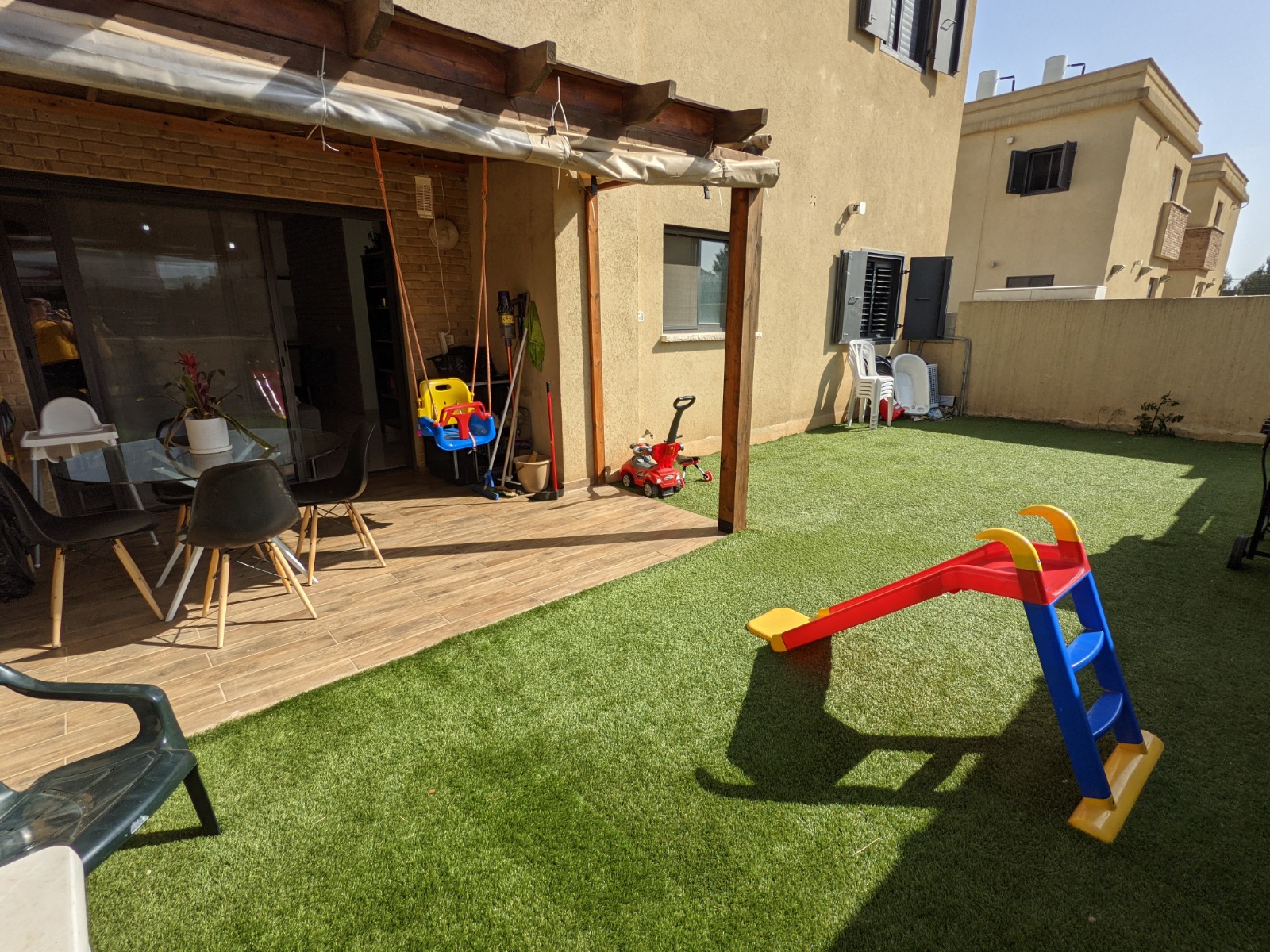 חדשה מטופחת וממוזגת בכל הבית, עם חצר דשא ופרגולה עם מתקני חצר (מגלשה, מקפצה חדשה)