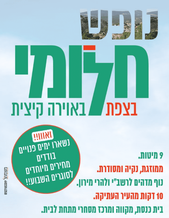 דירת נופש מהממת בצפת, נותרו ימים פנויים בודדים