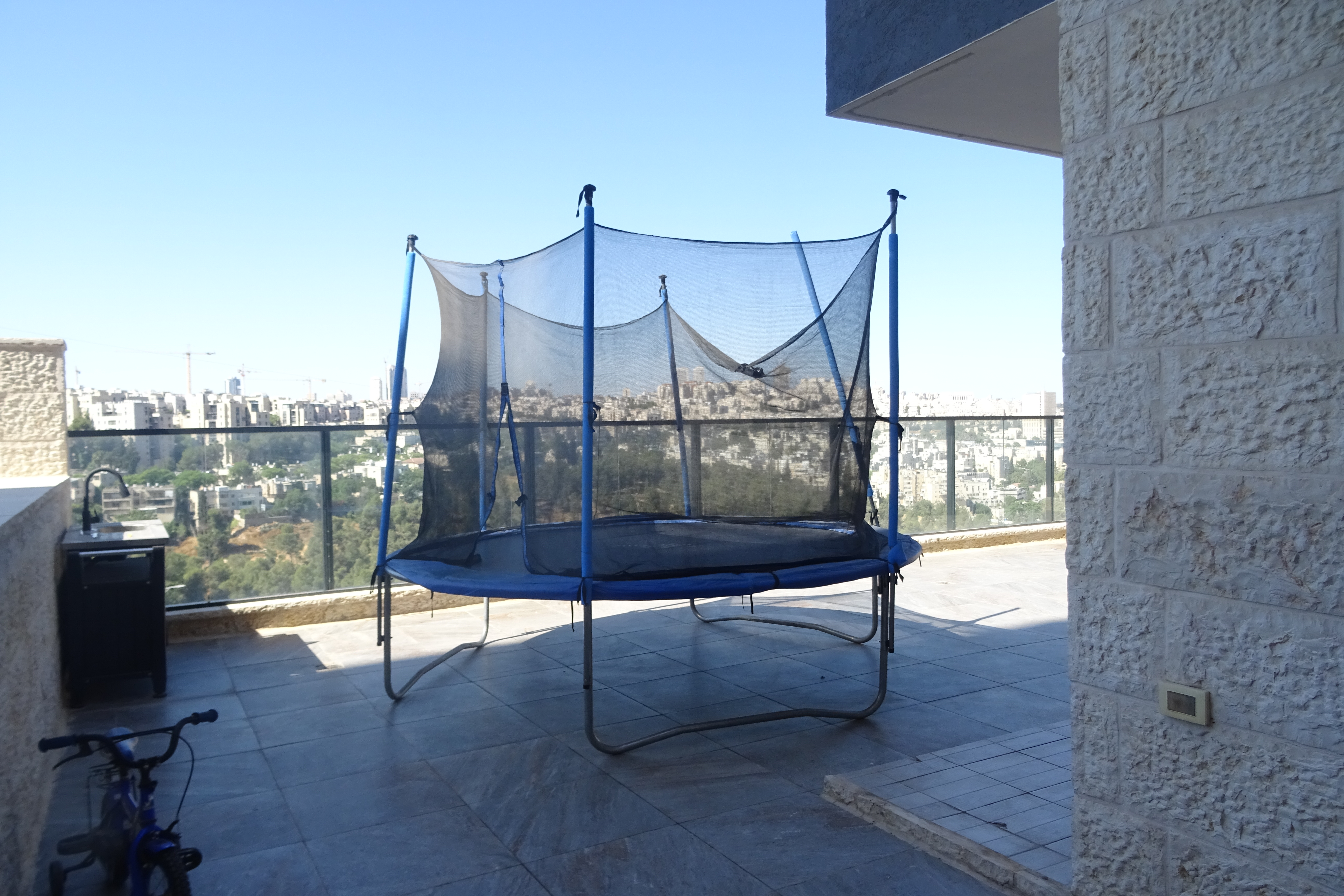 בריכה לילדים, טרמפולינה, מכשיר מנגל, ספסל נדנדה, אופניים, מכונת קפה ועוד שלל פינוקים.