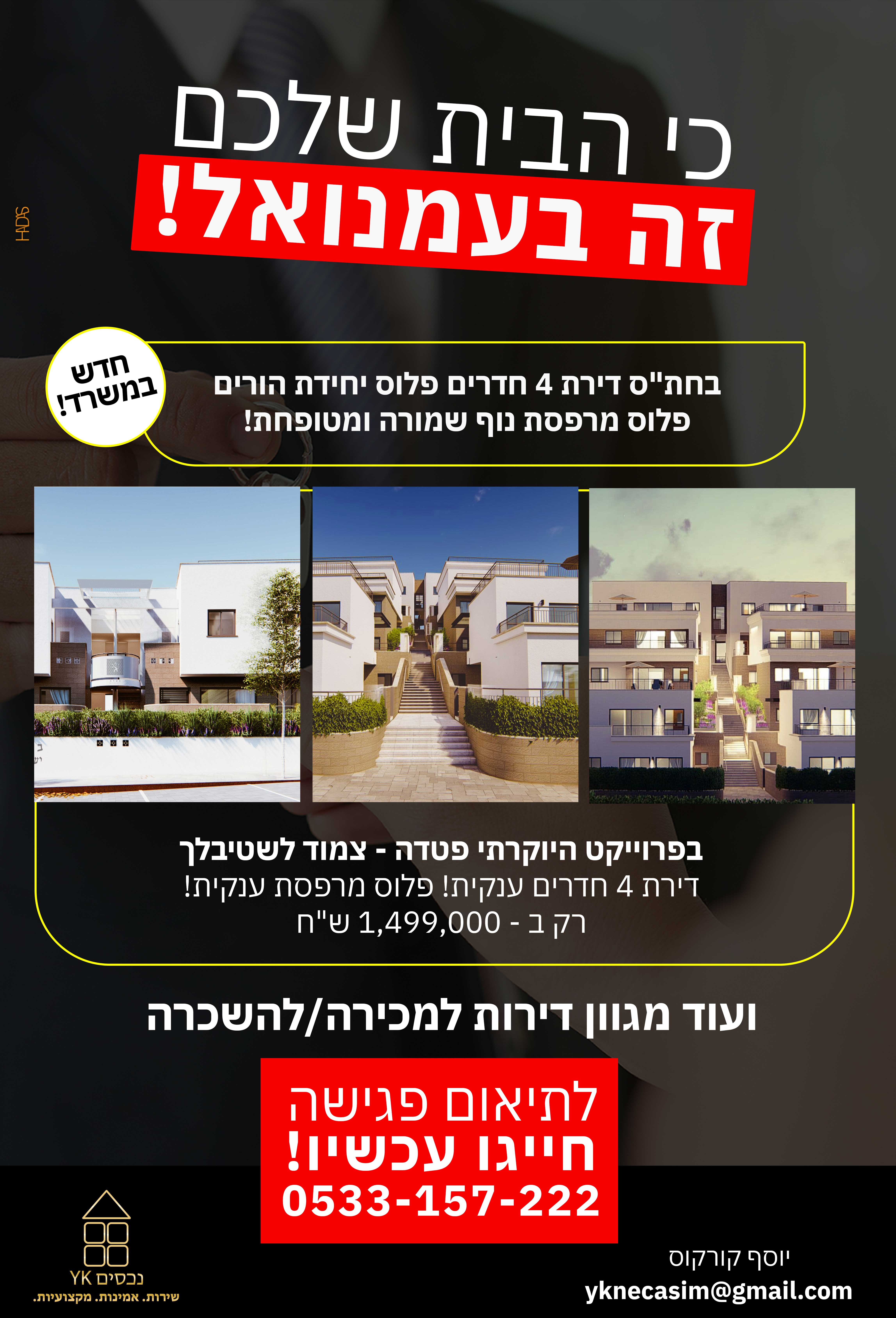 למכירה דירת 4 חדרים שמורה ומטופחת בעמנואל רק ב 800,000 , ולעוד נכסים החל מ 600,000