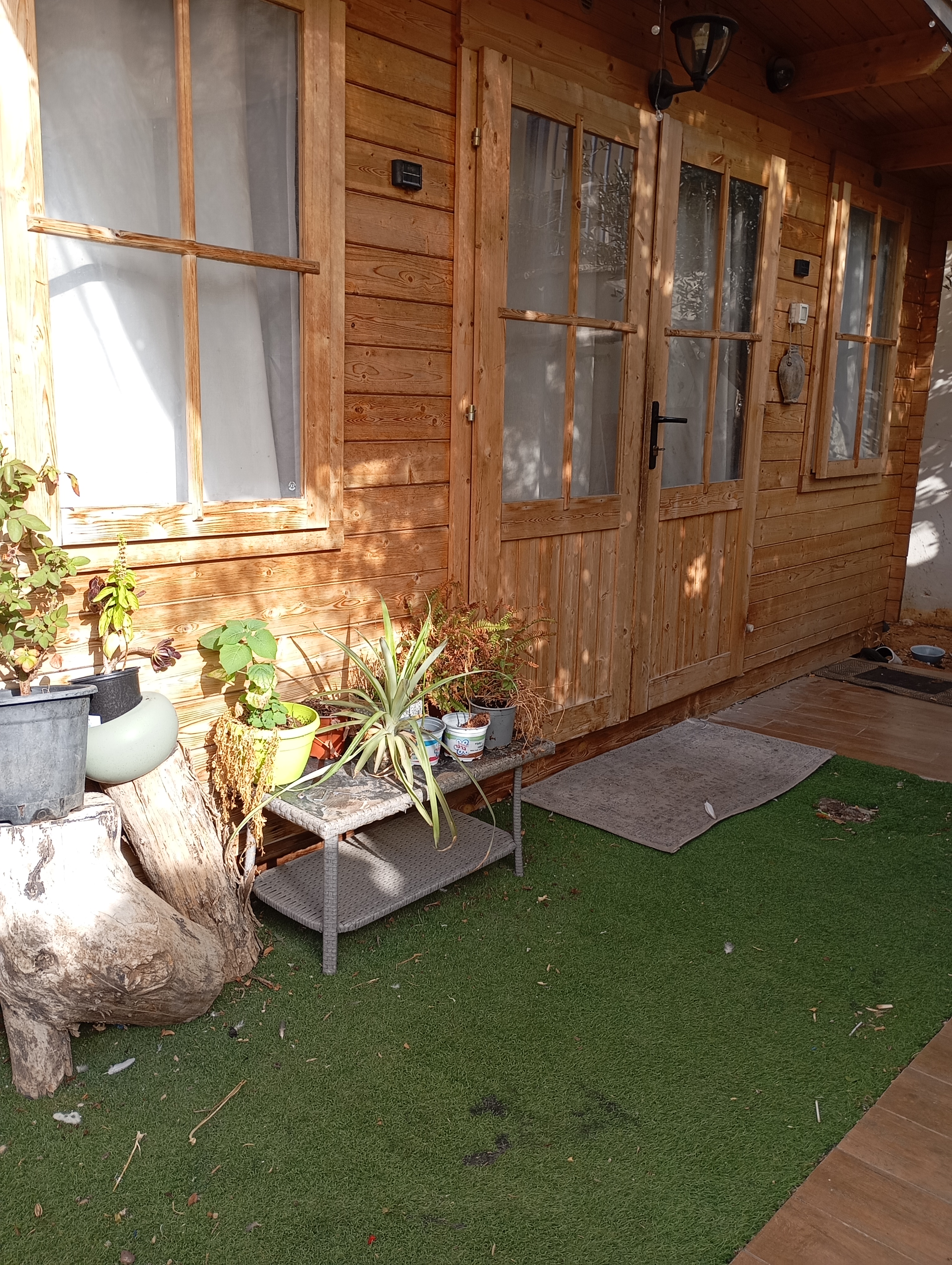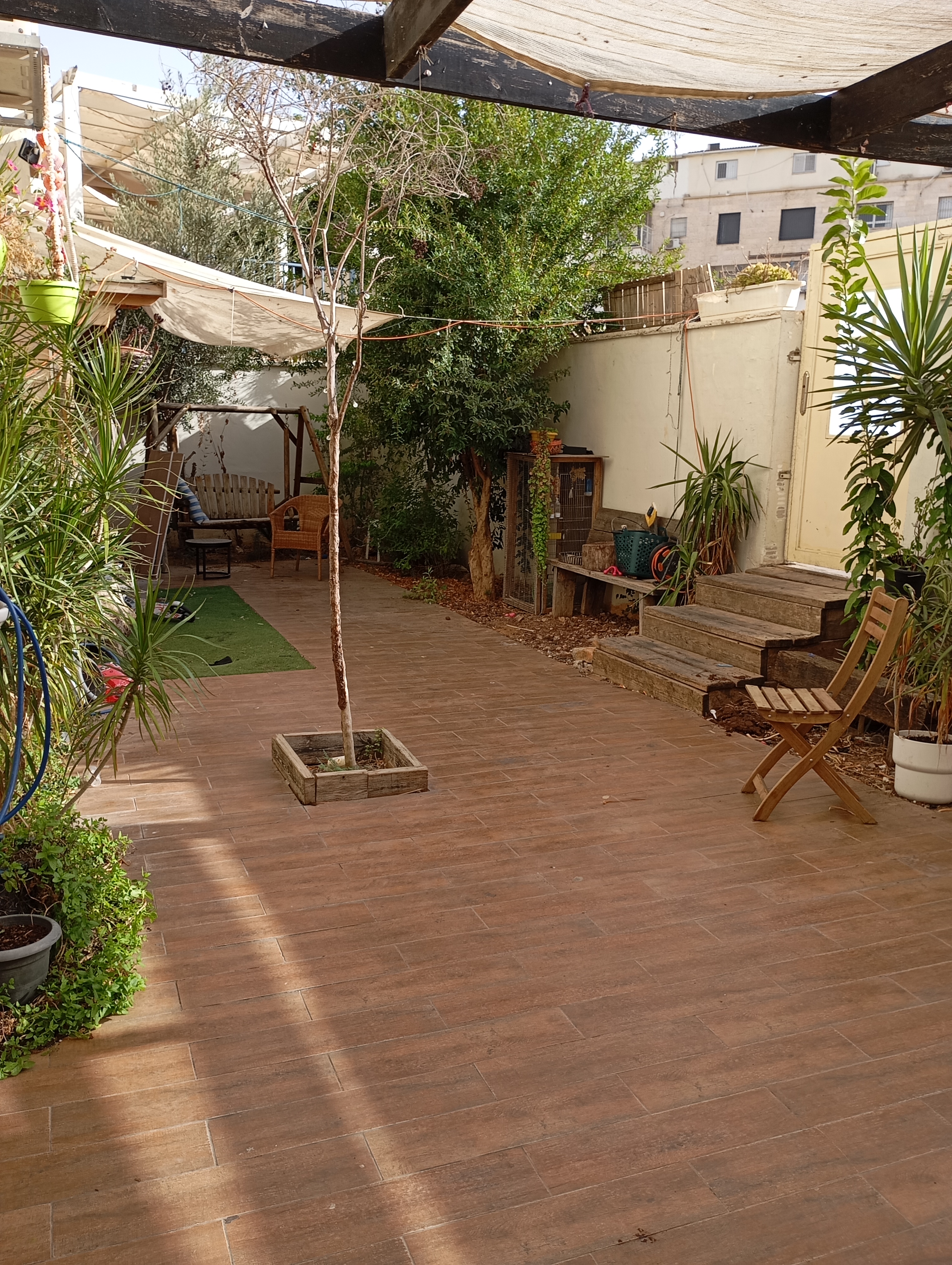 חצר גדולה + חדר עבודה \אירוח מעץ בחצר. שכנים טובים, כניסה מהבניין ומהחצר