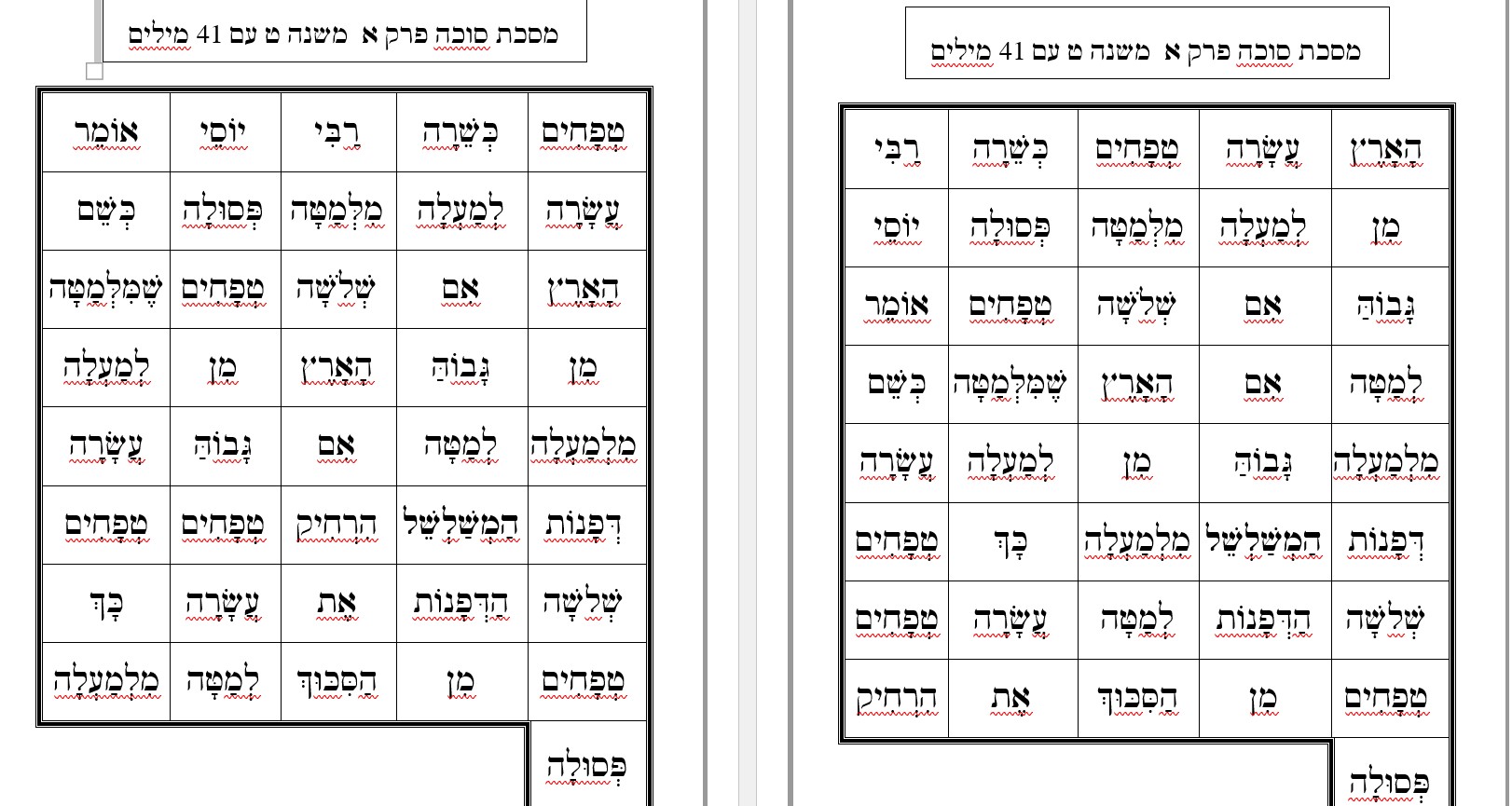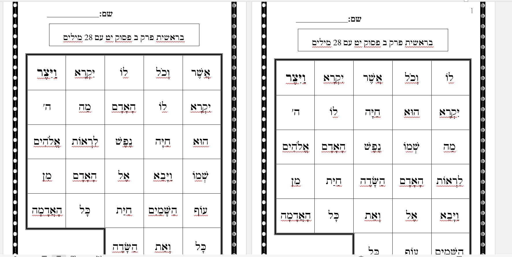 אלְדָוִד אֵלֶיךָ יי נַפְשִׁי אֶשָּׂא:באֱלֹהַי בְּךָ בָטַחְתִּי אַל אֵבוֹשָׁה אַל יַעַלְצוּ אֹיְבַי לִי:גגַּם כָּל קוֶֹיךָ לֹא יֵבֹשׁוּ יֵבֹשׁוּ הַבּוֹגְדִים רֵיקָם:דדְּרָכֶיךָ יי הוֹדִיעֵנִי אֹרְחוֹתֶיךָ לַמְּדֵנִי:ההַדְרִיכֵנִי בַאֲמִתֶּךָ וְלַמְּדֵנִי כִּי אַתָּה אֱלֹהֵי יִשְׁעִי אוֹתְךָ קִוִּיתִי כָּל הַיּוֹם:וזְכֹר רַחֲמֶיךָ יי וַחֲסָדֶיךָ כִּי מֵעוֹלָם הֵמָּה:זחַטֹּאות נְעוּרַי וּפְשָׁעַי אַל תִּזְכֹּר כְּחַסְדְּךָ זְכָר לִי אַתָּה לְמַעַן טוּבְךָ יי:חטוֹב וְיָשָׁר יי עַל כֵּן יוֹרֶה חַטָּאִים בַּדָּרֶךְ:טיַדְרֵךְ עֲנָוִים בַּמִּשְׁפָּט וִילַמֵּד עֲנָוִים דַּרְכּוֹ:יכָּל אָרְחוֹת יי חֶסֶד וֶאֱמֶת לְנֹצְרֵי בְרִיתוֹ וְעֵדֹתָיו:יאלְמַעַן שִׁמְךָ יי וְסָלַחְתָּ לַעֲוֹנִי כִּי רַב הוּא:יבמִי זֶה הָאִישׁ יְרֵא יי יוֹרֶנּוּ בְּדֶרֶךְ יִבְחָר:יגנַפְשׁוֹ בְּטוֹב תָּלִין וְזַרְעוֹ יִירַשׁ אָרֶץ:ידסוֹד יי לִירֵאָיו וּבְרִיתוֹ לְהוֹדִיעָם:טועֵינַי תָּמִיד אֶל יי כִּי הוּא יוֹצִיא מֵרֶשֶׁת רַגְלָי:טזפְּנֵה אֵלַי וְחָנֵּנִי כִּי יָחִיד וְעָנִי אָנִי:יזצָרוֹת לְבָבִי הִרְחִיבוּ מִמְּצוּקוֹתַי הוֹצִיאֵנִי:יחרְאֵה עָנְיִי וַעֲמָלִי וְשָׂא לְכָל חַטֹּאותָי:יטרְאֵה אוֹיְבַי כִּי רָבּוּ וְשִׂנְאַת חָמָס שְׂנֵאוּנִי:כשָׁמְרָה נַפְשִׁי וְהַצִּילֵנִי אַל אֵבוֹשׁ כִּי חָסִיתִי בָךְ:כאתֹּם וָיֹשֶׁר יִצְּרוּנִי כִּי קִוִּיתִיךָ:כבפְּדֵה אֱלֹהִים אֶת יִשְׂרָאֵל מִכֹּל צָרוֹתָיו: