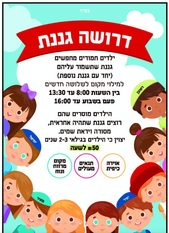 דרושה גננת למ"מ בנווה יעקב ירושלים