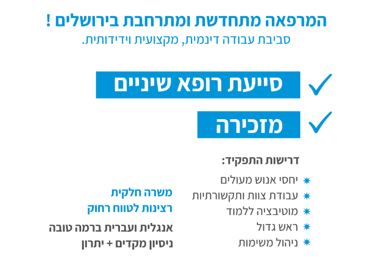 המרפאה מתרחבת! סביבת עבודה דינמית, מקצועית וידידותית!