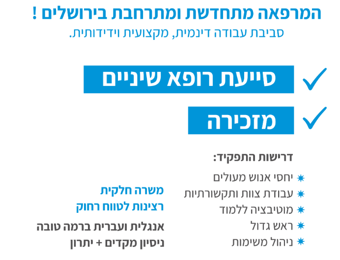 המרפאה מתרחבת! סביבת עבודה דינמית, מקצועית וידידותית!