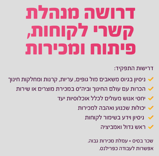 דרושה מנהלת קשרי לקוחות, פיתוח ומכירות