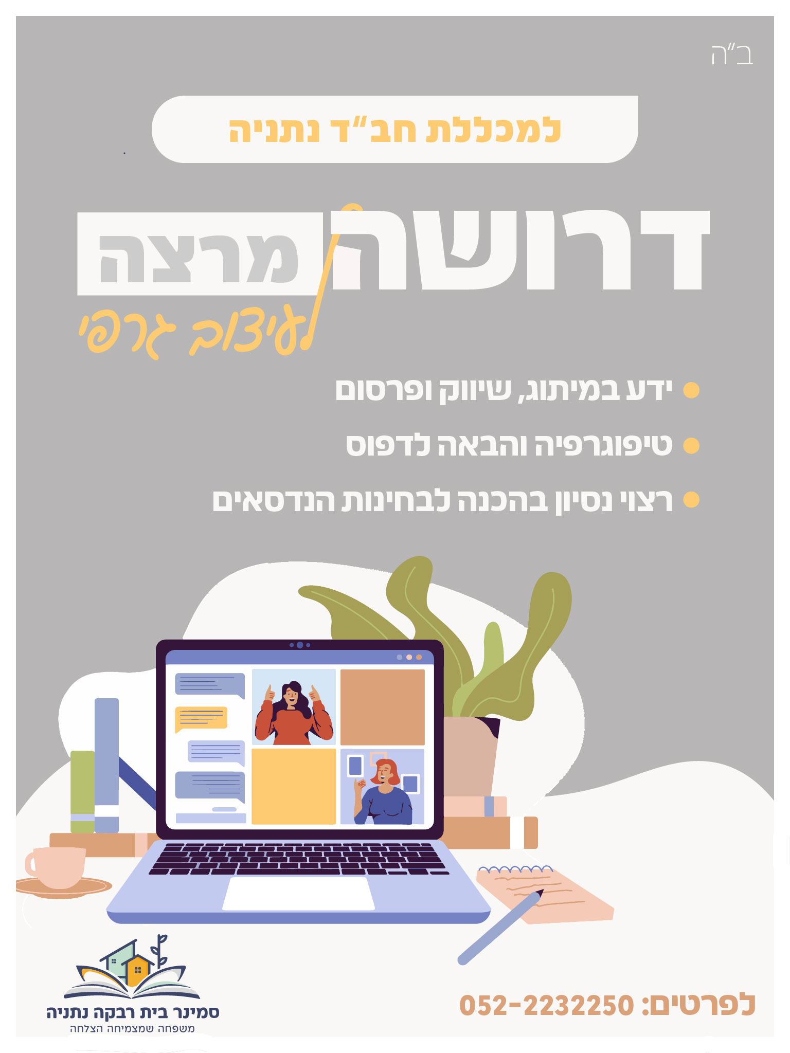דרושה מרצה לעיצוב גרפי לצוות מכללת חב"ד נתניה למספר שיעורים.