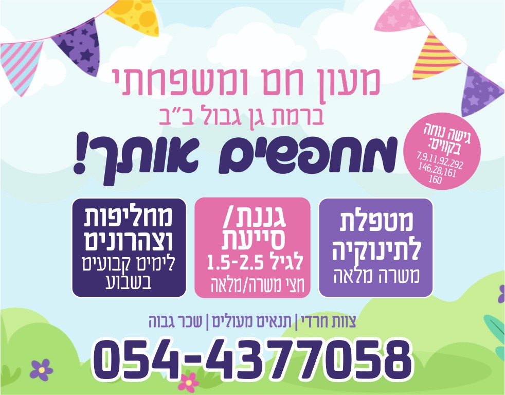מעון חם ומשפחתי ברמת גן גבול ב"ב מחפש נשים מסורות להרחבת הצוות.