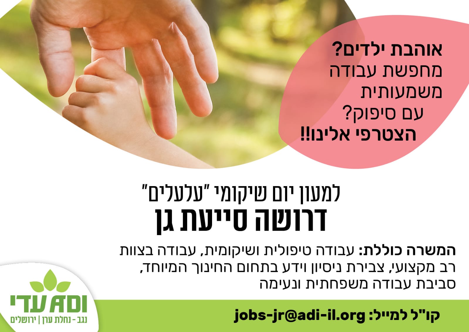 דרושות סייעות גן תותחיות עם אפשרות קידום