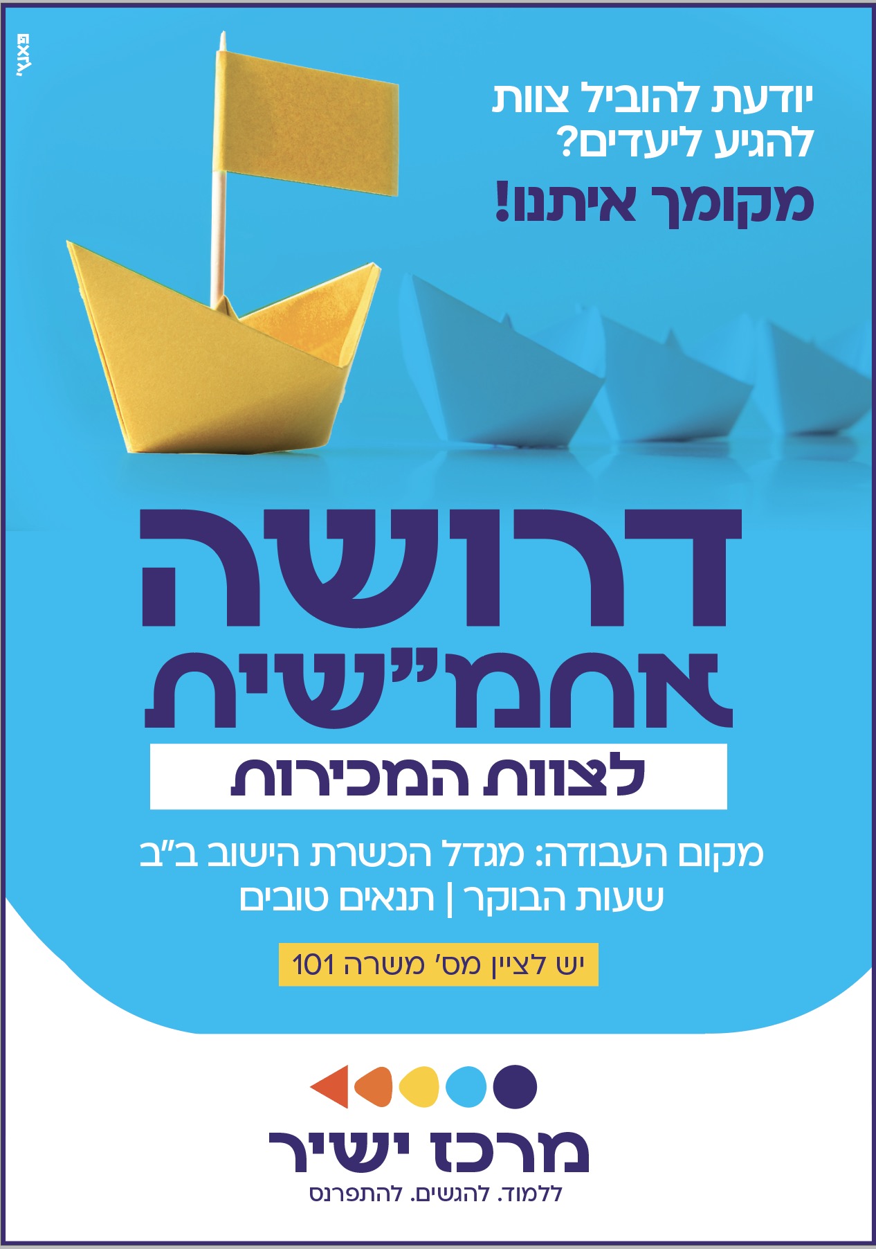 דרושות 1. אשת מכירות 2.אחמשית בב״ב