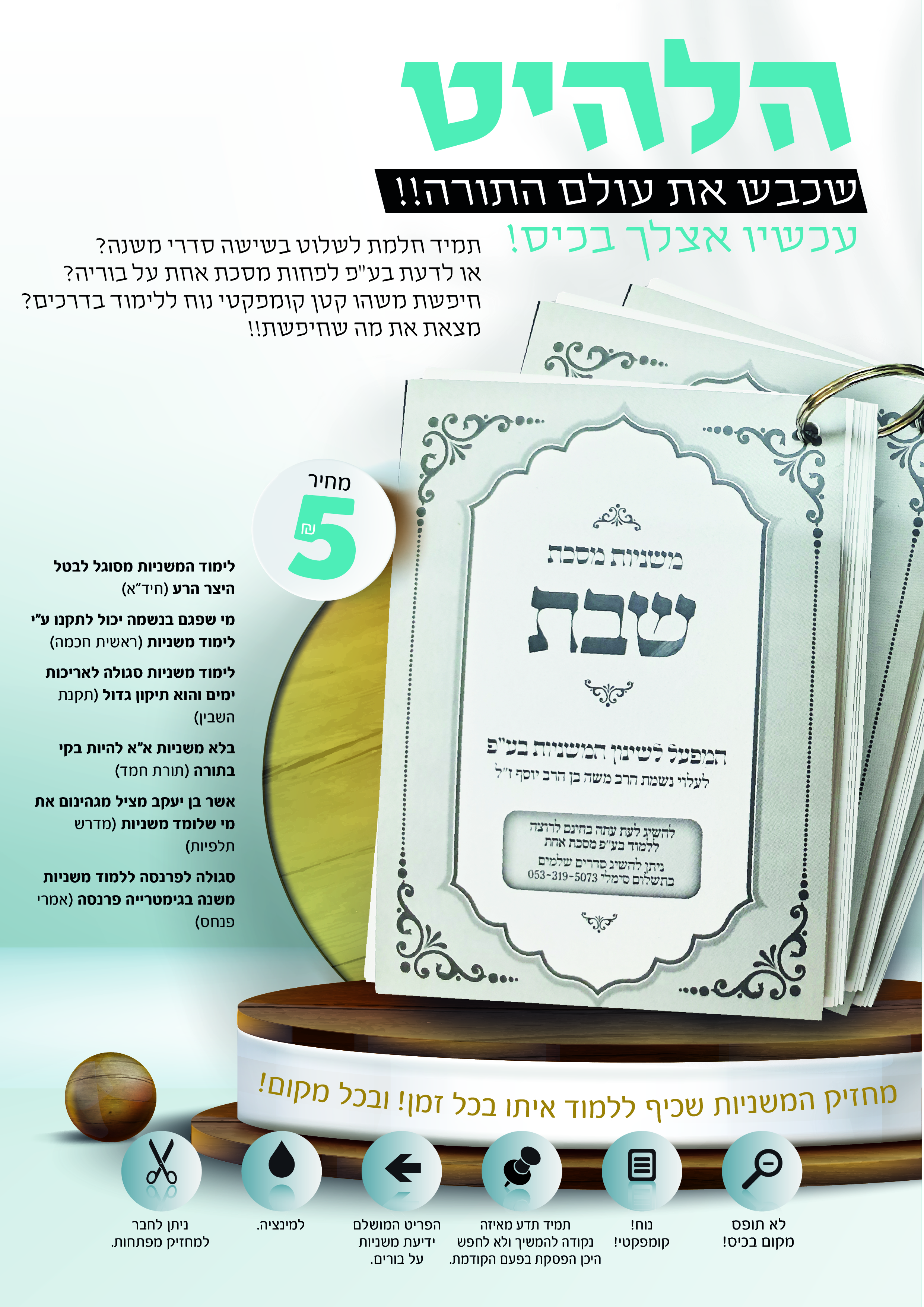 מחזיק המשניות נמכר במחיר של - 6 ש"ח עמלה של 1.5 על כל מכירה
