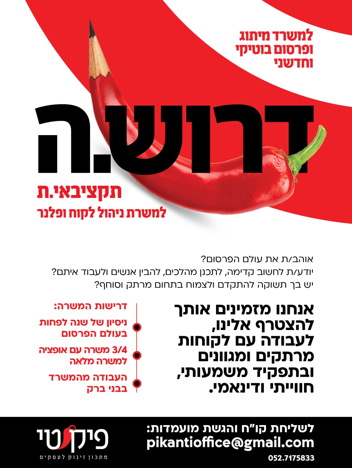 שליחת קו"ח בדוא"ל: Pikantioffice_gmail.com
