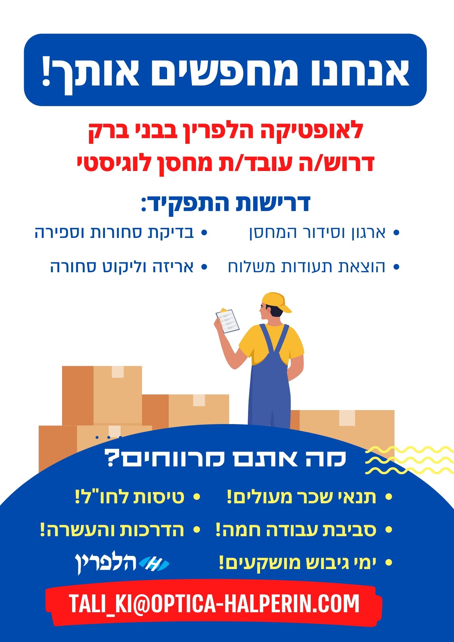 קורות חיים יש לשלוח למייל: tali_ki*optica-halperin.com